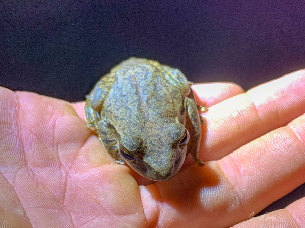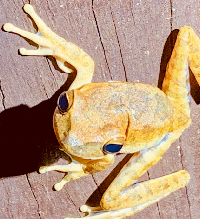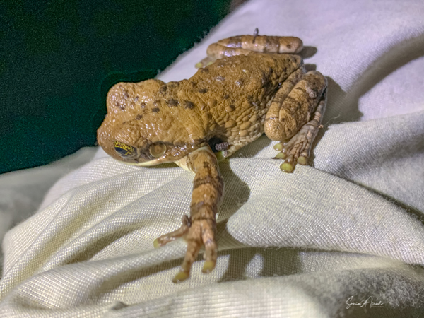 Sean, who worked at the lodge, came out with me and picked up a frog to show me. Later, after dinner, Ruthi and Sean came to look at frogs in the back marsh. They saw all four of the local species, which Sean was very excited about as he is a herpetologist. And Ruthi shared her pictures with me. Later, Sean also showed me some of those frogs. They are all pretty teeny. We saw the Lysapsus limellum (a tiny green singing frog), Trachycephalus venulosus (milk frog), Scinax similis and a Hypsiboas raniceps. There are about 40 species in the Pantanal. Sean lamented that frogs get no respect.