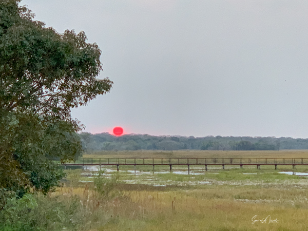 Several weeks after we got home, in mid-September, the Pantanal burst into flames. Whether it was arson, as in the Amazon, or just due to nature, is unclear. What is clear is that the trees and the grasses and the ecolodges and worst of all, the animals and birds were in great danger. We heard that half of the Caiman Ecolodge has burned down. Our hearts go out to the men and women who have made the Pantanal their home. They are in danger of losing everything, including their livelihood. And we can only hope that Apex (see post on Jaguars) and the other jaguars and all the other animals were able to run or fly or swim fast out of danger.