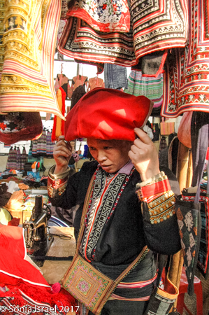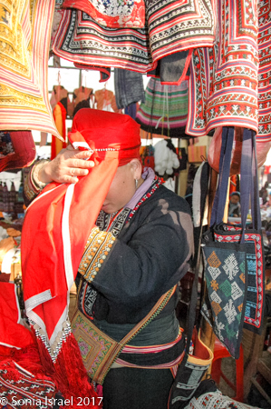 I did sign to one woman that I wanted to buy a red headdress like hers. It turned out to be a large red scarf and she patiently showed me how to wrap it just right around my head.