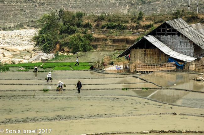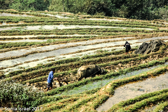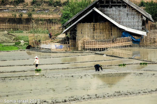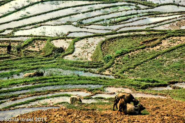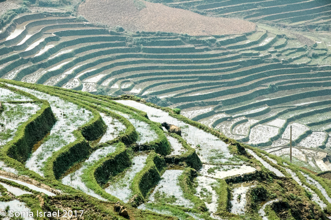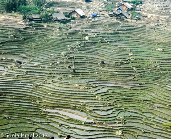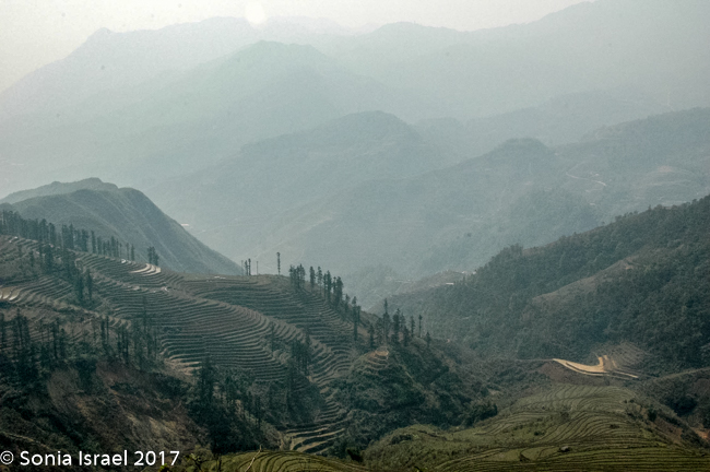 We arrived in Lao Cai at 5:30 in the morning and were met by our guide Hal. It was a 45 minute ride into Sapa through gorgeous blue mountains covered in haze towering above terraced rice fields on the sides of the mountains down to the valley. More on the terraces later.