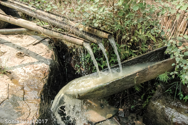 After the market and our walk, we got back into our van for the 50-minute ride to Ban Ho, one of the Zhao villages. Along the way we passed through the mountains again, this time with the sun up. The terraces are spectacular, like abstract paintings. They are primarily small rice fields. The villagers work them with their children and their water buffalo (more on water buffalo later). It is hard to explain the beauty of the lines seen from up above, many of them flooded with the sun reflected in them, or with small rice sprouting. And they go on for what seems like forever from one side of the mountain to the other.