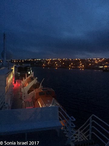 We docked early in the morning, back at our same spot in Stanley. This time it was to say goodbye. They called us by cabin numbers this time, instead of
