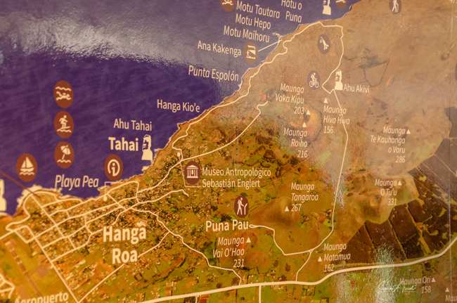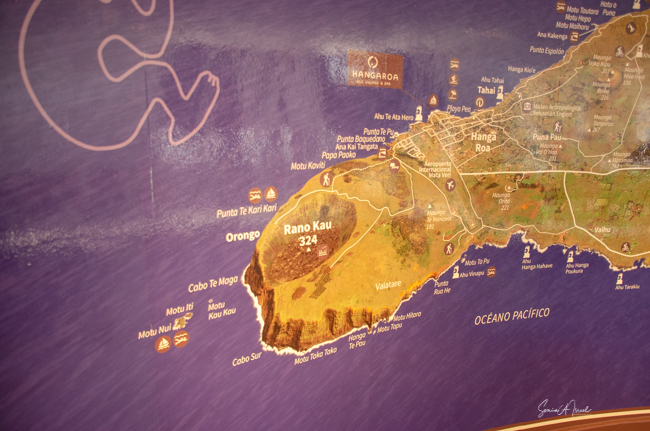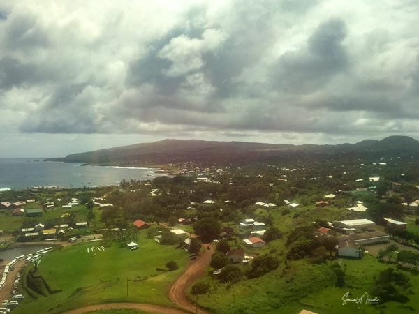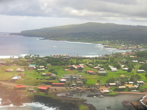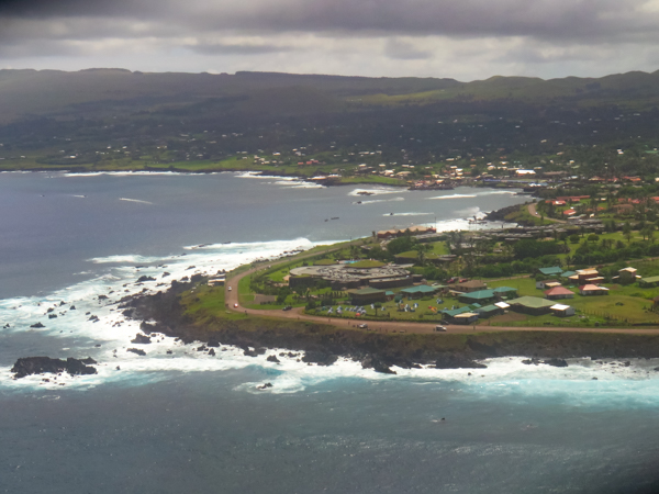 Our trip started in Santiago which we had visited before, so we just spent the one night before leaving for Easter Island, in the middle of the Pacific Ocean and the most remote island on Earth. We flew Latam Airlines on the Dreamliner. We got to sleep some as it is over a 5-hour flight. Easter Island really is in the middle of nowhere. As we approached, we could make out the triangular island that would be our home for the next week. We were traveling with Abercrombie & Kent (A&K) along with our friends Melissa and Michael, Helene and Alan, Sherry, and Phyllis. Note please that a few of the photos are from Helene and Melissa. We had several wonderful guides, including Nune Hucke, Lili Pate (who was the queen of the Tapati in 2012, see more about that in the Tapati post), and others.