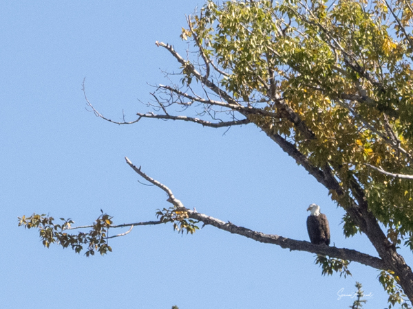 We, of course, saw birds everywhere. Our very first morning we stopped at a river where two eagles were just sitting by the edge of the water. We watched them for a bit, until they flew off. And then a flock of geese flew overhead. FIX PICS