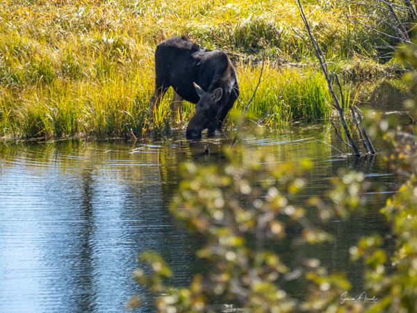And then, in the Grand Tetons, we saw a mother moose and her calf grazing along the river. The females look so different than the males as they don’t have those large, gorgeously shaped antlers. They heads are elongated and they have a “bell, a pendulous piece of skin dangling down from their throat,” all of which gives them a funny look.