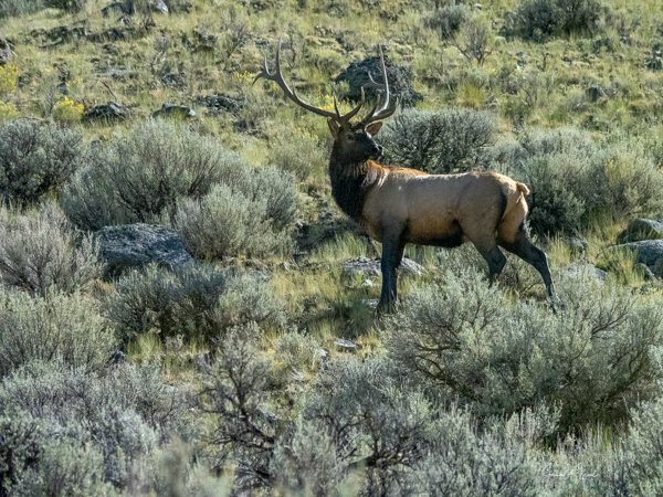 One of the main reason tourists visit Yellowstone is to see the wildlife. Yellowstone is considered the finest wildlife habitat on the continental US. There are close to 60 species of mammals including the Rocky Mountain wolf (which we saw), coyote (which we saw), the Canadian lynx (which we did not see), cougars (which we did not see), bison (which we saw), elk (which we saw), moose (which we saw), mule deer (which we saw), white-tailed deer (which we saw), mountain goat (which we saw), pronghorn (which we saw lots of), and bighorn sheep (which we saw). Oh, and of course black and grizzly bears (which we sort of saw).