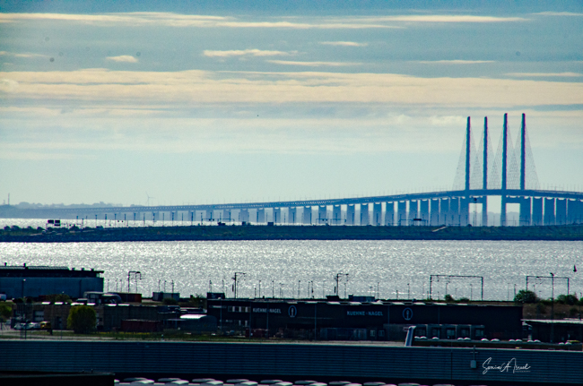 I was on my way to Aarhus, for work, but also for play. I landed in Copenhagen, and because of the late arrival time, spent the night at the Clarion Hotel at the Copenhagen airport. I could see the bridge to Malmo, Sweden from my window.  And since I was jet lagged, I got to watch the beautiful sunrise over the water.