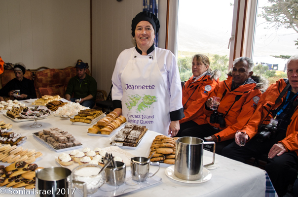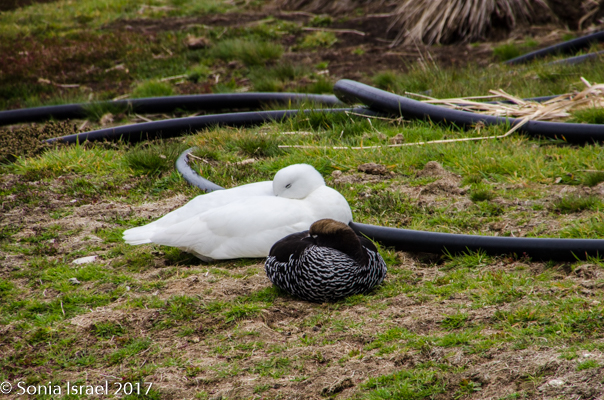 We went on what was called the medium photo walk which was a loop of about one mile with David as our guide. We saw military starlings, Magellanic oyster catchers, blackish oyster catchers, Wilson storm petrels, Kelp geese, Upland geese, Tussock birds (also called the blackish cinclodes) and Cobb’s wren. The Tussock bird and Cobb’s wren are found only in the Falklands. The birds were chirping like crazy. Maybe because we were too close. Maybe because that is just what they do.