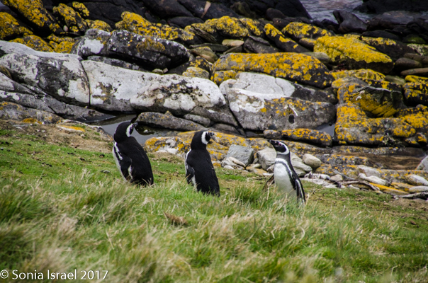 What we really wanted to see were the Magellanic penguins, as this would be our only opportunity to see them. We saw lots of burrows which the penguins make as their nests, but not any penguins. Until we got almost to the McGill home and there we saw one penguin swimming towards the shore. He hopped onto land and we realized there were two more penguins standing there. They greeted each other, beak to beak, like long lost friends.