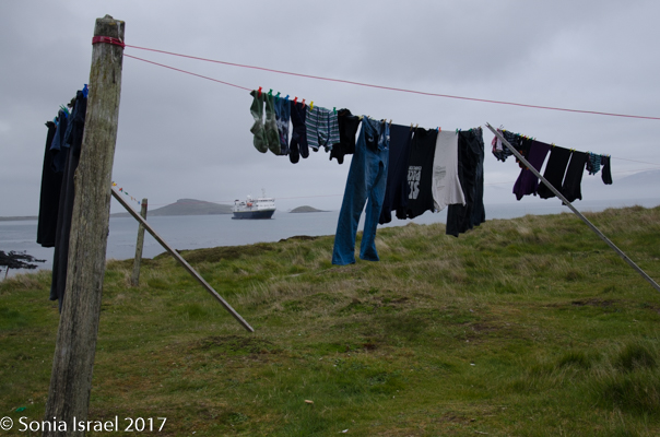 I decided to walk around the farmhouse a bit. I walked over a small wooden bridge into their backyard, at the edge of the island. Out back was a clothesline with clothes blowing in the wind, drying. I love the smell of fresh laundry that dries in the sun. I walked over and then noticed our ship in the distance, looking small but still powerful.