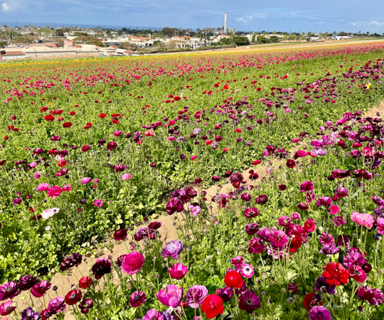 The 50 acres of Giant Tecolote Ranunculus flowers are considered one of the most spectacular displays of color and nature’s beauty in the world, at least for the 6-8 weeks each year that they bloom. And when we read that the fields are open, we know Spring is around the corner. Better than the groundhog.