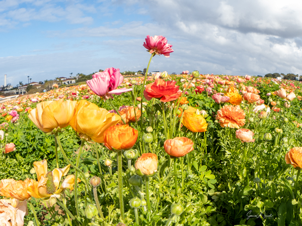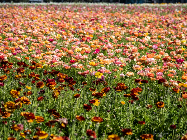 Well, it is still COVID season. All my scheduled trips abroad to new and exotic places have been falling by the wayside, one-by-one, like dominoes. So, I continue to search for new things to do and see locally, and places to practice my photography with my new Olympus Om D Em1 Mark III. One of the trips cancelled was to see the tulips blooming in Amsterdam. So, my friend Debbie K (who was going to join me on that trip) and I headed just up the road to the Flower Fields in Carlsbad. For those of you following my blog, this one is a short one with more pictures than words.