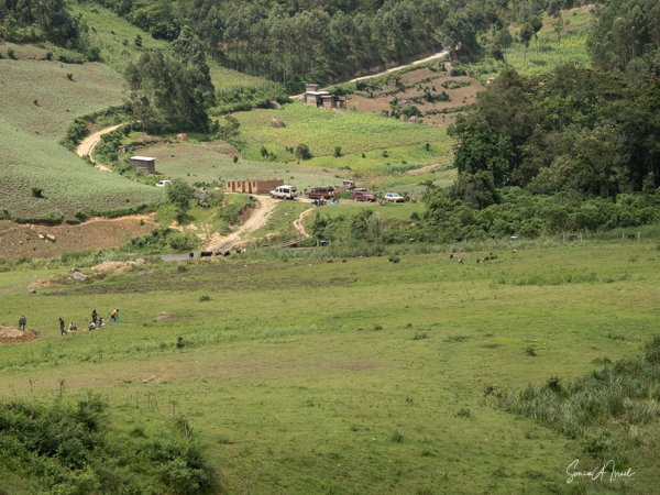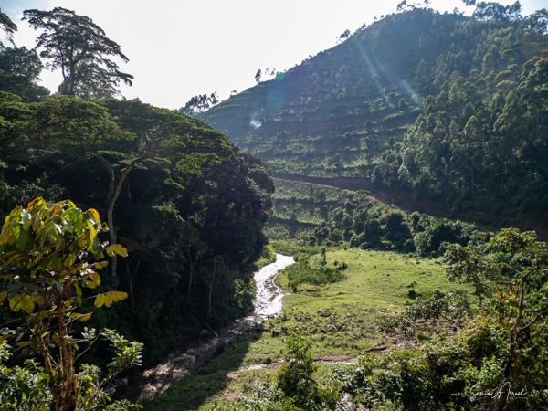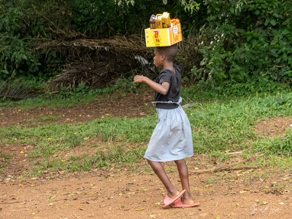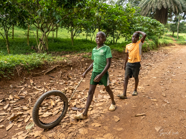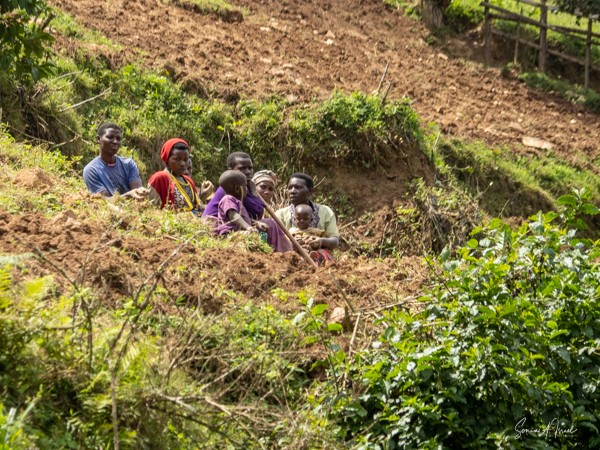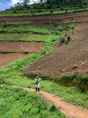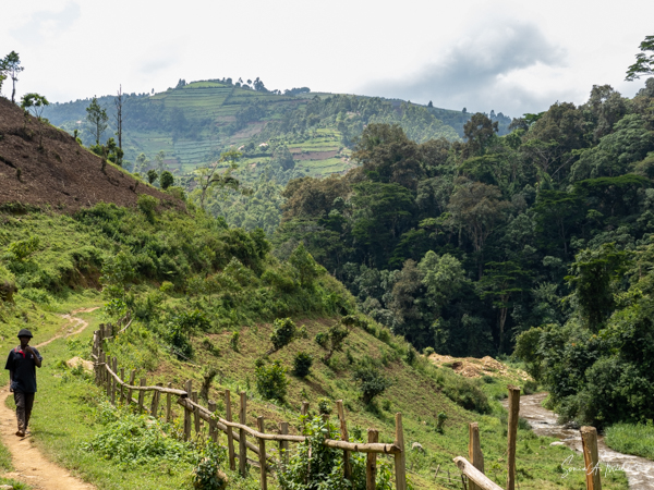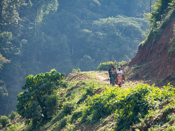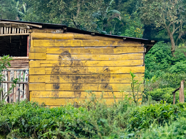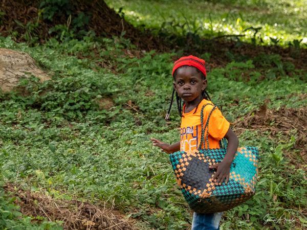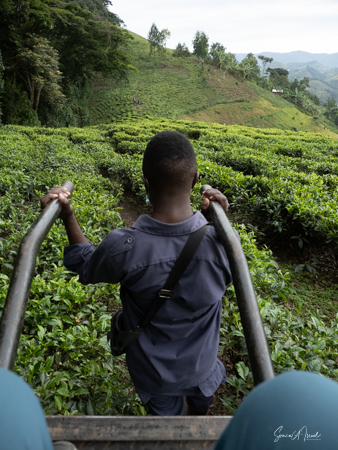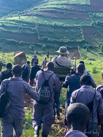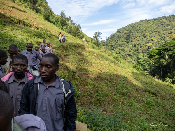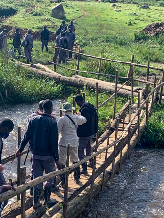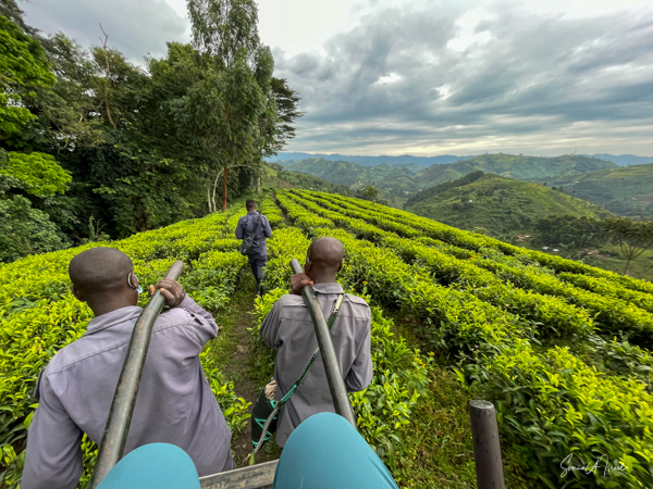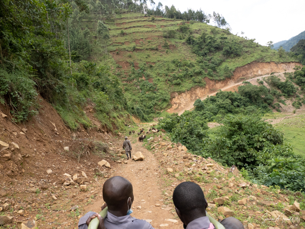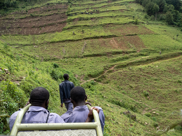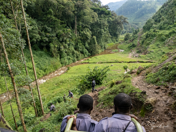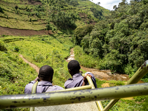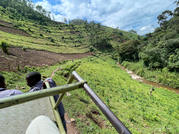And then our hour was up. It seemed to have flown by, even with the difficult trekking through the forest chasing after the gorillas. I was put back in my chair and we headed back down the mountain, across the bridge and back along the narrow path. We did stop to rest, to catch our breathes, to have a snack and some water. We passed more people walking. And before we knew it, we were back at the car with Sulai waiting for us. There seemed to be more children this time, just sitting and watching us. After two years of the pandemic and no tourists, seeing white people must have seemed strange to them.