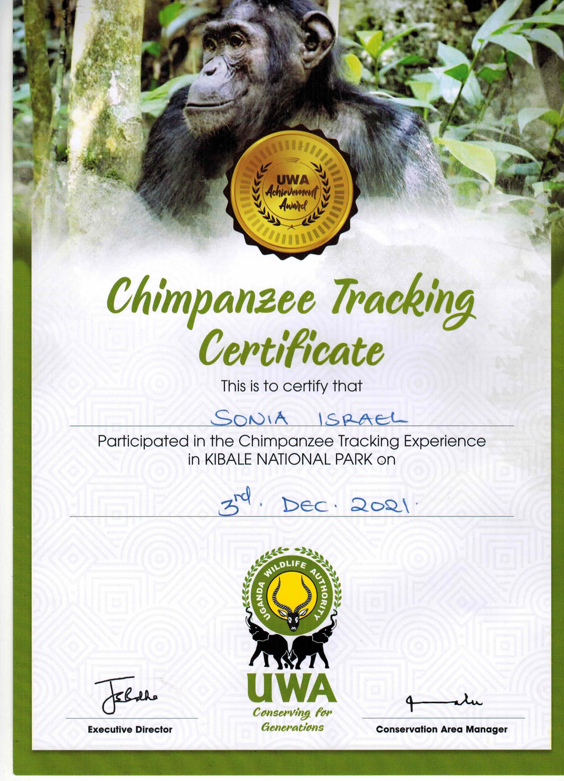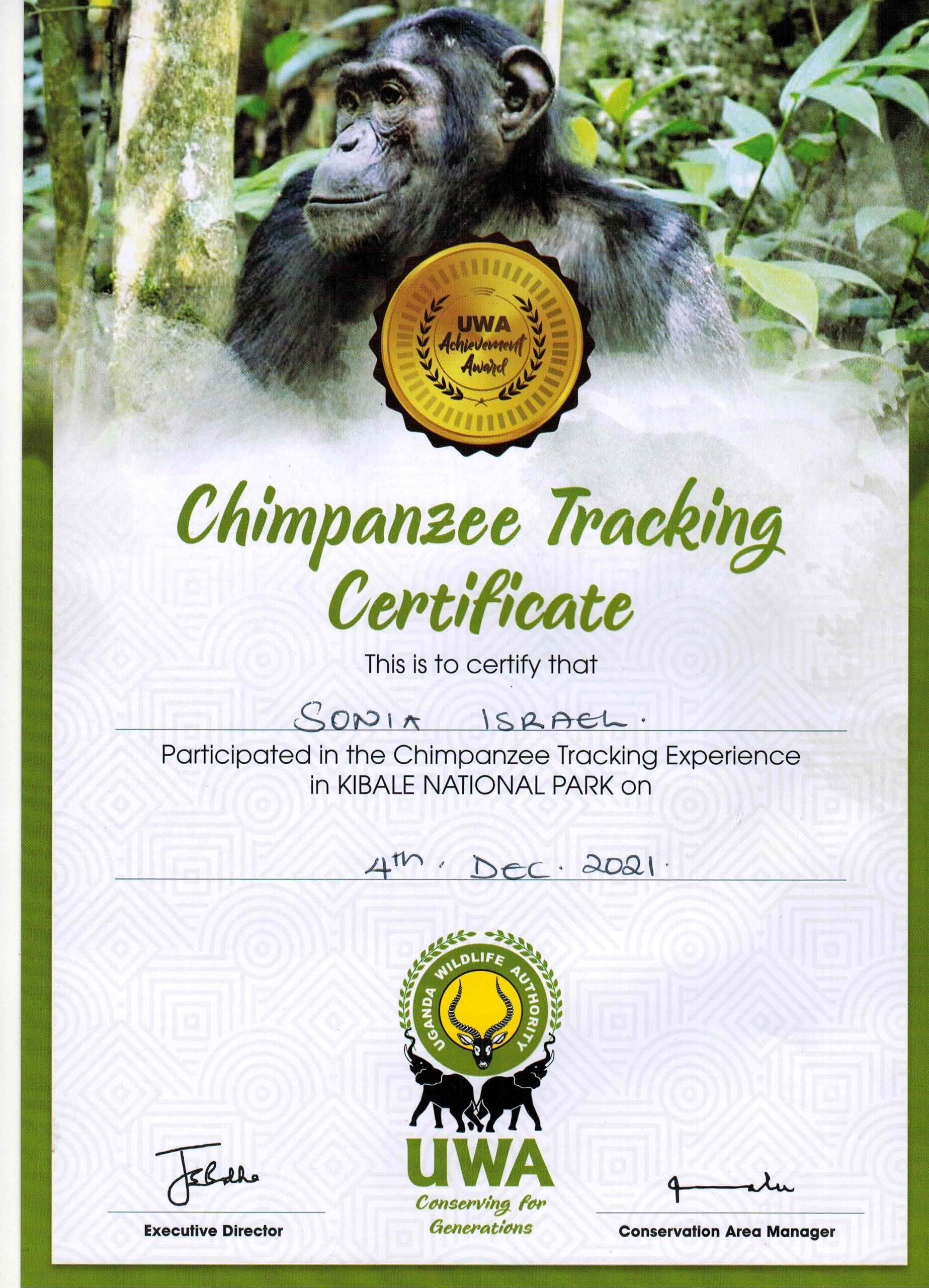 And after each trek, we earned a Chimpanzee Trekking certificate.