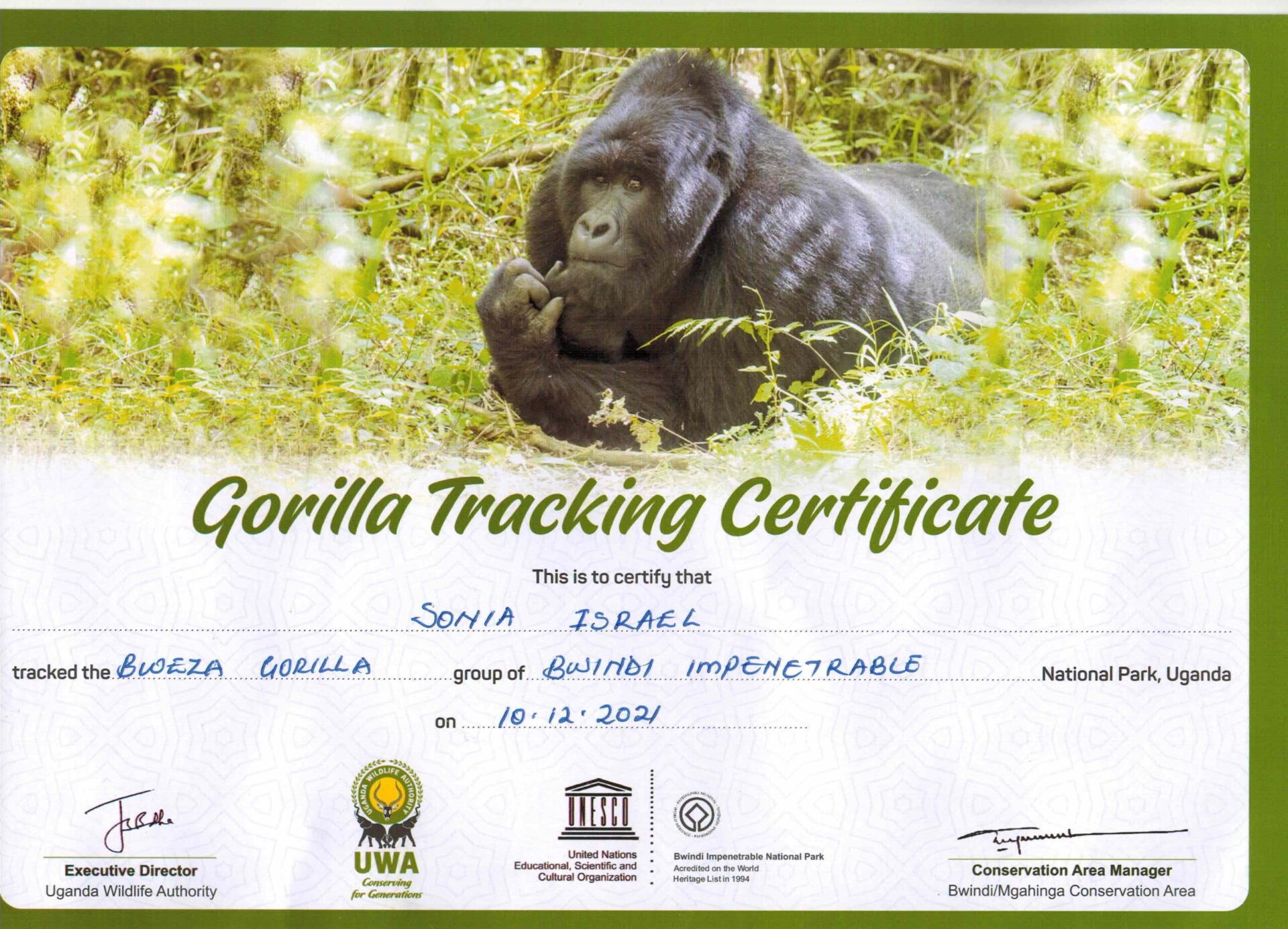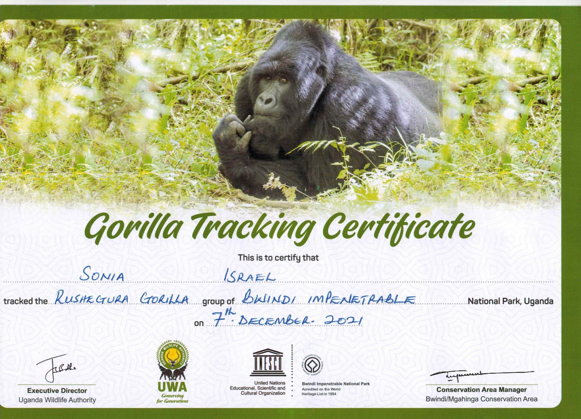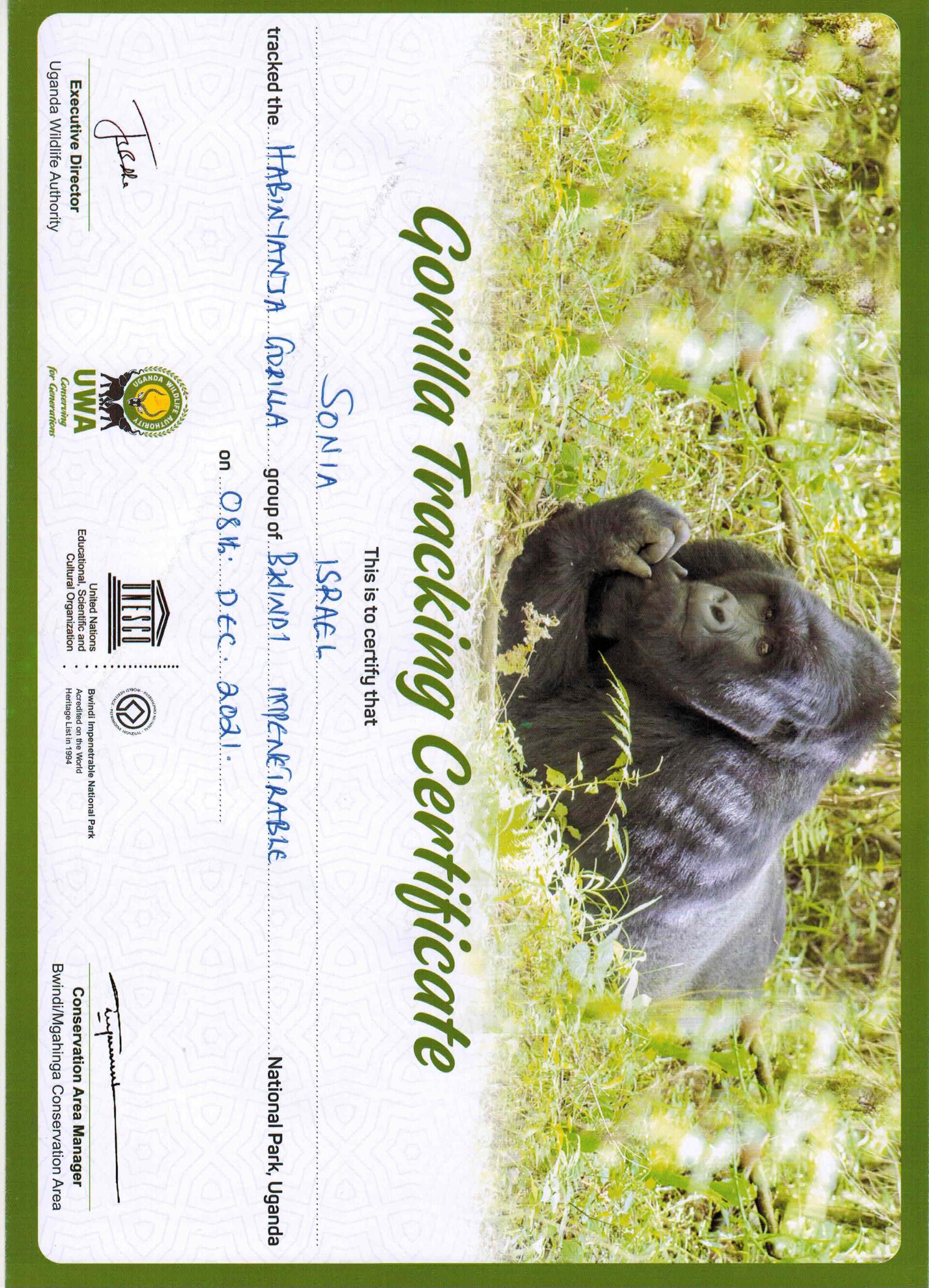 And after each of our gorilla treks, we also earned certificates.