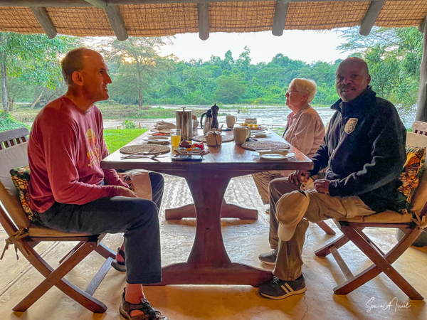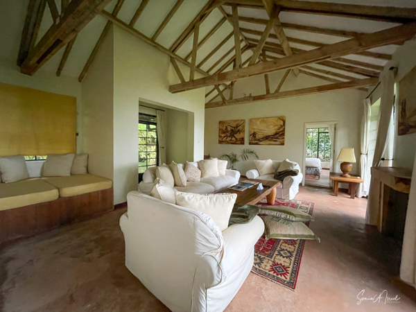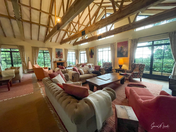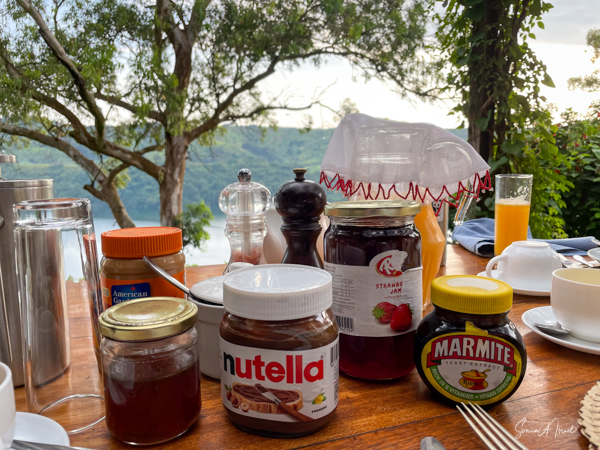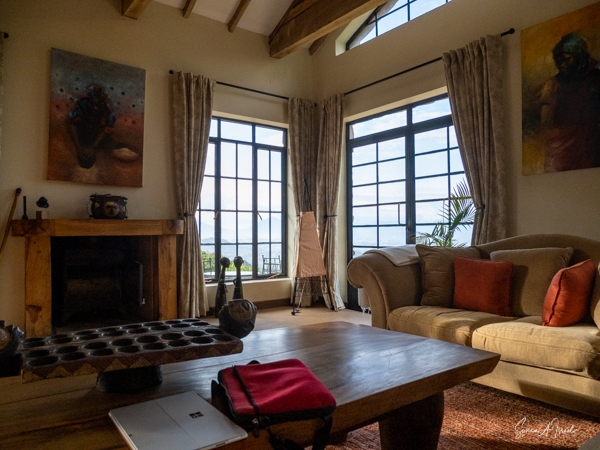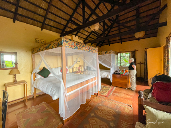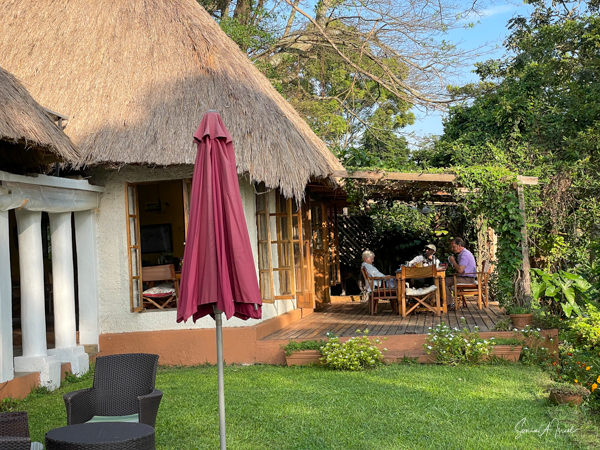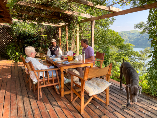 This is a good time to tell you about the Ndali Lodge. The Ndali is a family-owned estate that dates back to the 1920s. Aubrey Price and his wife Claire were there to greet us, along with a gaggle of dogs, as we jumped out of our car after a long, arduous ride. We were served a wonderful juice from locally grown fruit, and given a warm towel.