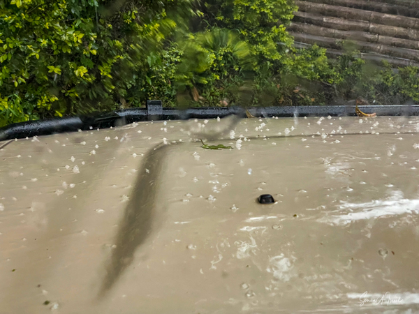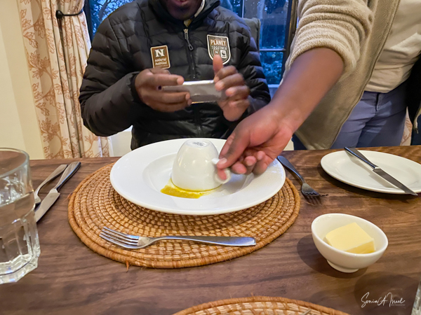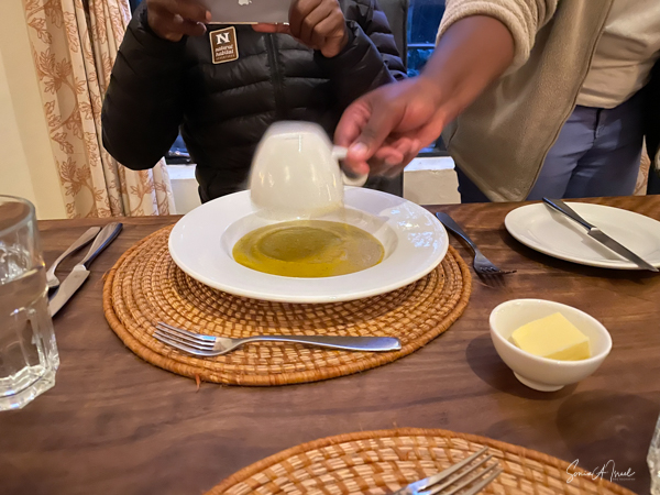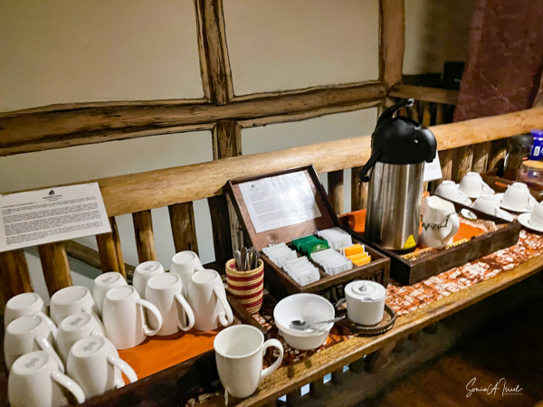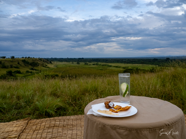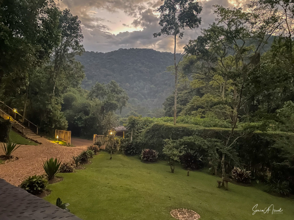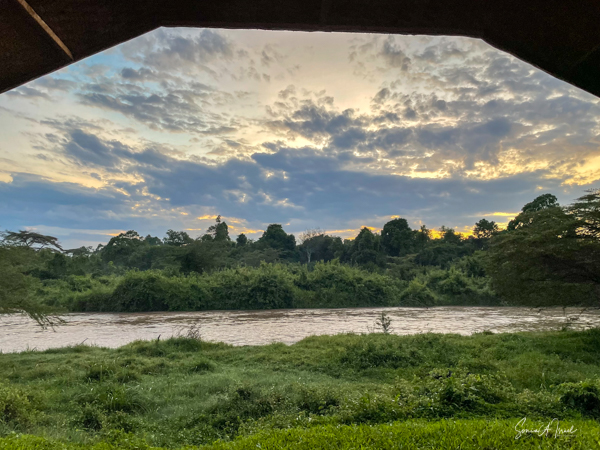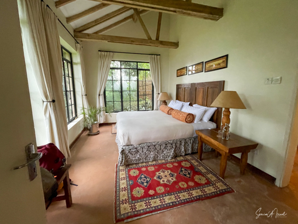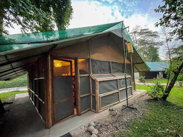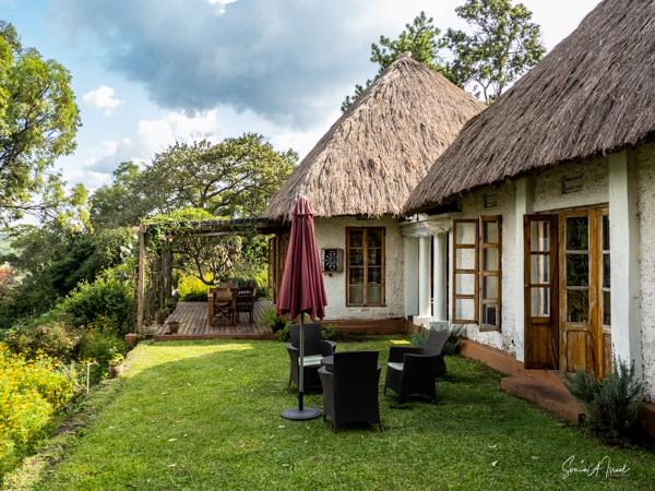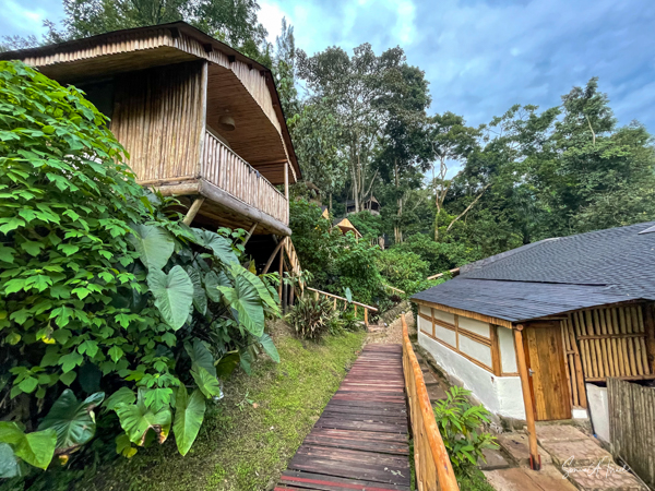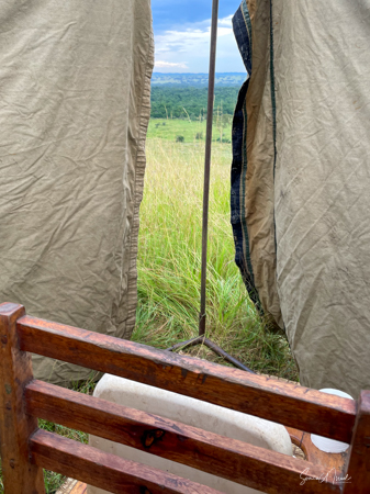 We hit the road for the seven-hour drive to the southern part of Bwindi. Seven hours on a bumpy, pothole ridden, dirt road. I felt like my body was in a washing machine. Not a good feeling. But as usual, Sulai was amazing getting us over these roads. We arrived at our most elegant lodge yet, the Clouds Mountain Gorilla Lodge, just as the skies opened and it began to pour and hail. We sat in the car for a few minutes until the staff came out with umbrellas to great us.