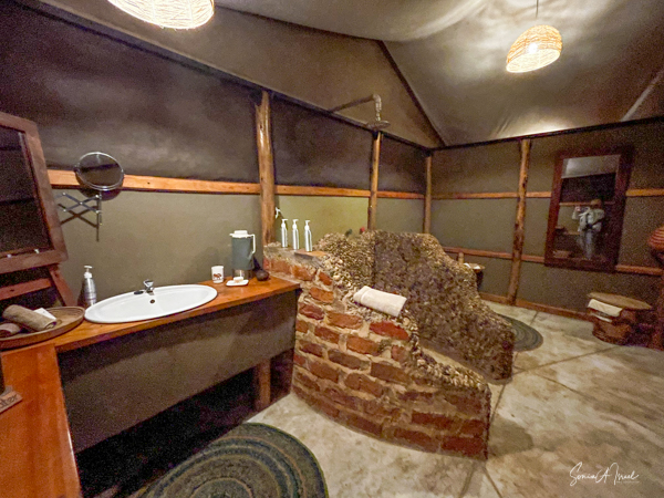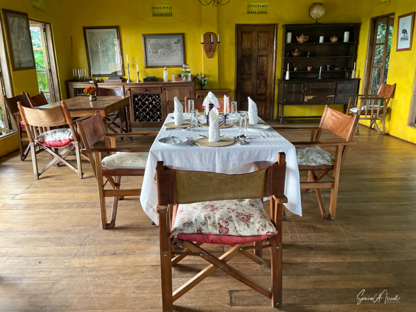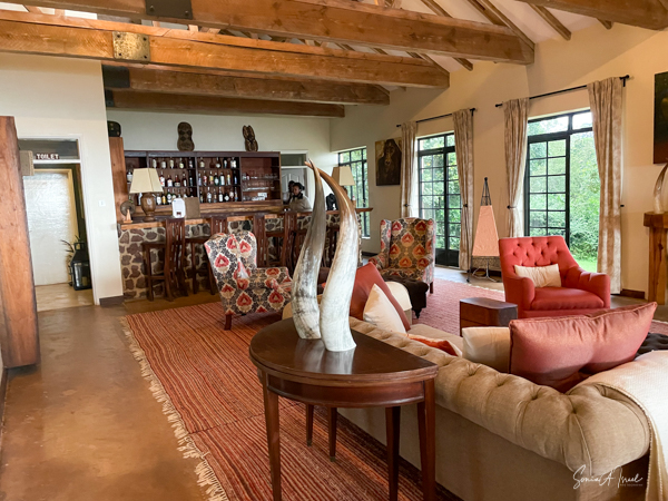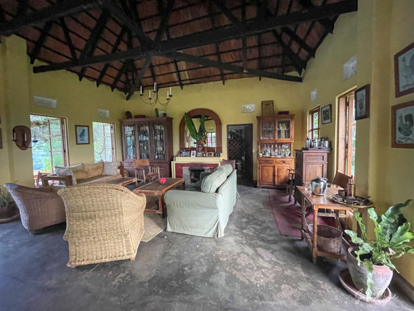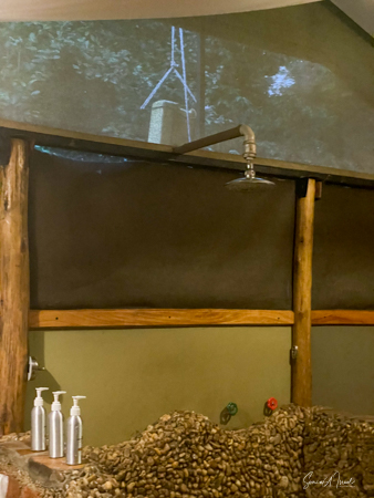 The main public area consists of several rooms, including a dining room with large glass doors looking out to both views and a large veranda running the length of the house on the lake side. There is also a living room area where we enjoyed drinks on the night it rained. All charging of phones and computers takes place in the main lodge in a dedicated room and WIFI is just in the public areas. The public areas are lit by candle, which was very romantic and gave the place a feeling of long ago. But it also made it very hard to see our fabulous four-course meal or where we were going.