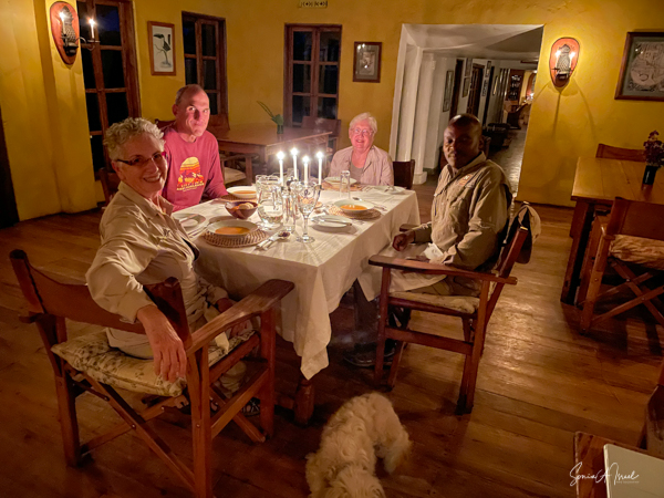 And then we got to rest and relax, enjoy a wonderful candlelit dinner (tonight’s menu was mushroom soup, beetroot salad and tilapia), a brief lecture on photography by Paul, and then we collapsed in our beds.