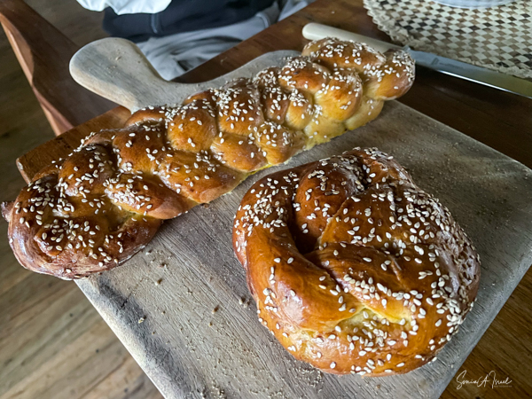 The food was fabulous, cooked fresh at each meal keeping our individual preferences in mind. Breakfast was outside on the patio, overlooking the lake. One morning they made donut holes filled with jam. The funny part is that we were there on Hannukah and that is one of the traditional foods, unknown to them! And they also made challahs for us.