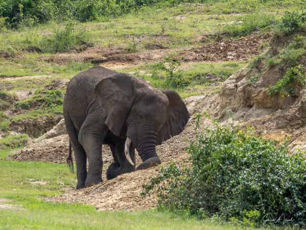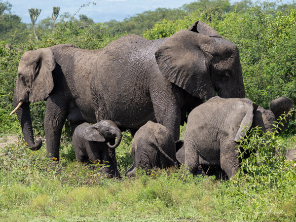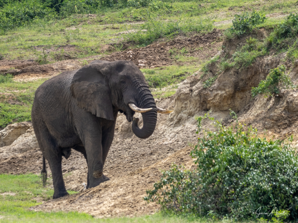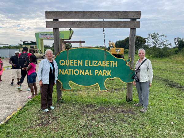 After our two chimpanzee treks, we left the Ndali Lodge and drove to Ishasha, where we spent the next 1.5 days. Ishasha is in the southern part of Queen Elizabeth National Park. Queen Elizabeth National Park (QENP) itself is in the Western part of Uganda, on the border with the Democratic Republic of Congo, and where we spent most of our time. It is a very large park at 764 square miles and is one of Uganda’s most varied and protected areas. The QENP, because of its location on the floor of the Albertine Rift Valley at the foot of the snow-capped Rwenzori mountain between Lake Edward and Lake George, is one of the most beautiful parks. It was originally called the Kazinga National Park but was renamed in 1954 when Queen Elizabeth II came to visit.