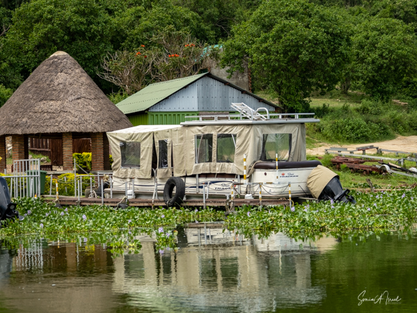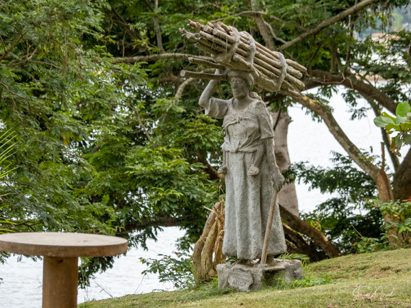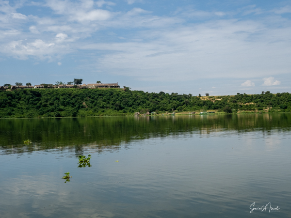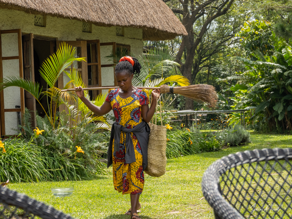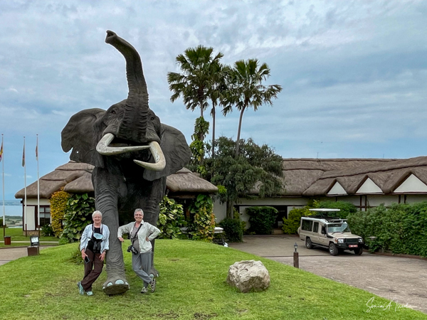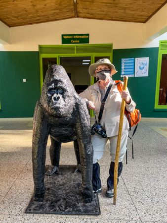 There was an area for swimming and having lunch, with picnic tables. There were two statues there, one of a Uganda woman with her hoe and carrying sticks on her head. This turned out to be a very typical sight in Uganda. The other statue was of a gorilla, a very important animal in Uganda.