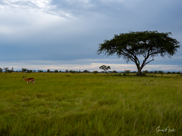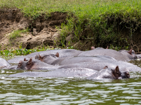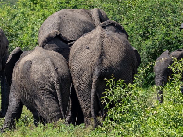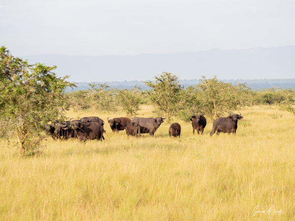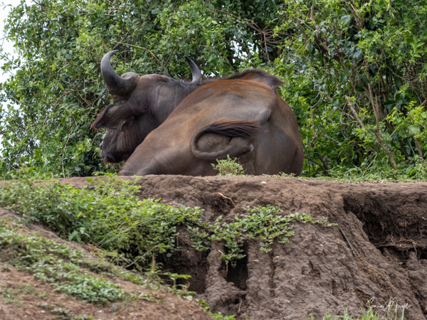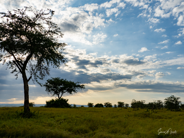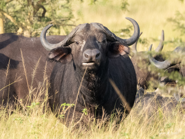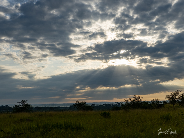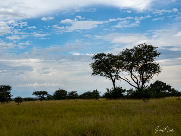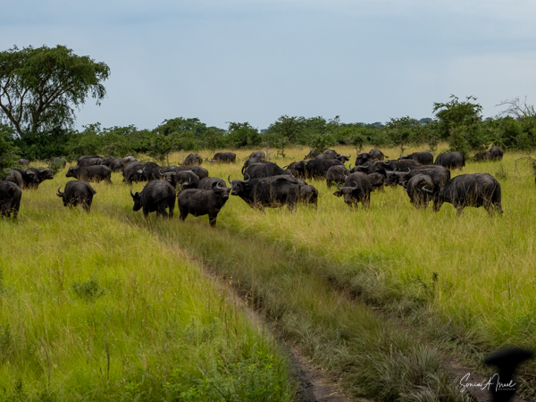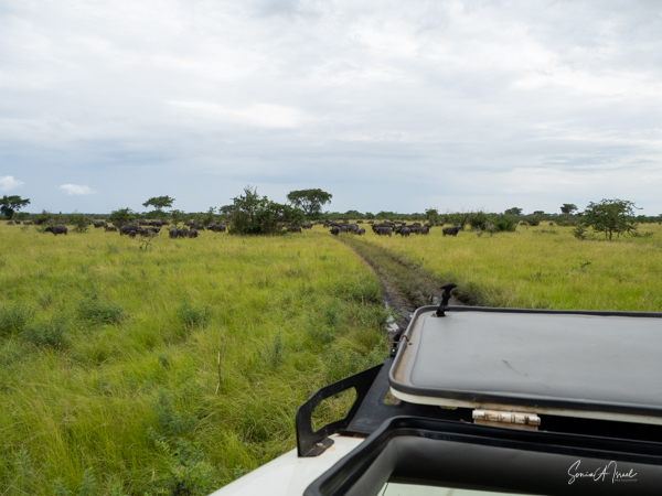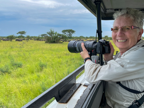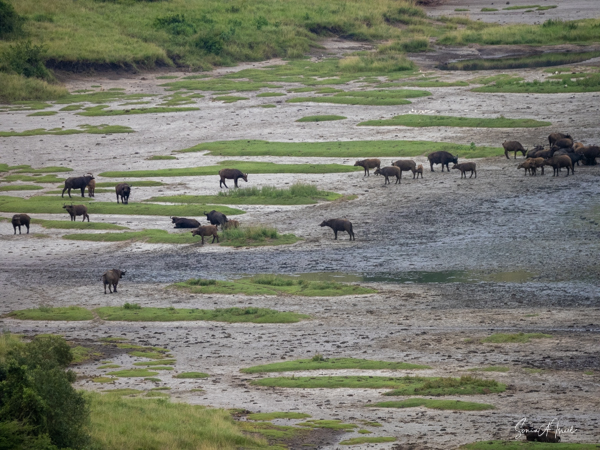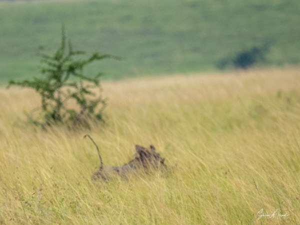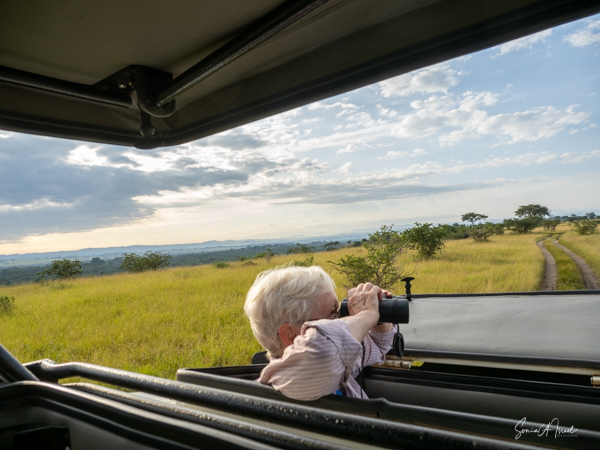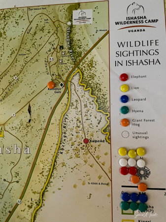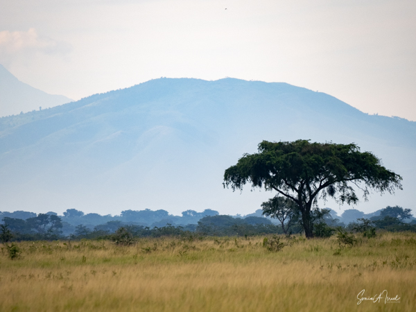 We drove around Ishasha in the afternoon, going from one fig tree to another, as that is the tree climbing lions’ favorite spot. At the first fig tree, we thought we saw a flash of yellow deep in the bushes under the tree. But no lions in the tree. We came back the next morning and drove for quite a few hours. Still no tree-climbing lions. Sulai thought that the males had wandered into the Congo and only two females with cubs where still in this area, and to protect their cubs, they were more likely to hide in bushes than to climb. We were ready with our cameras and binoculars, but we never got to see lions climbing trees.