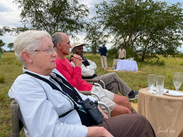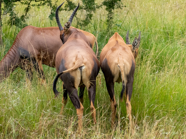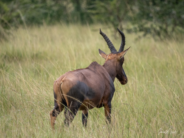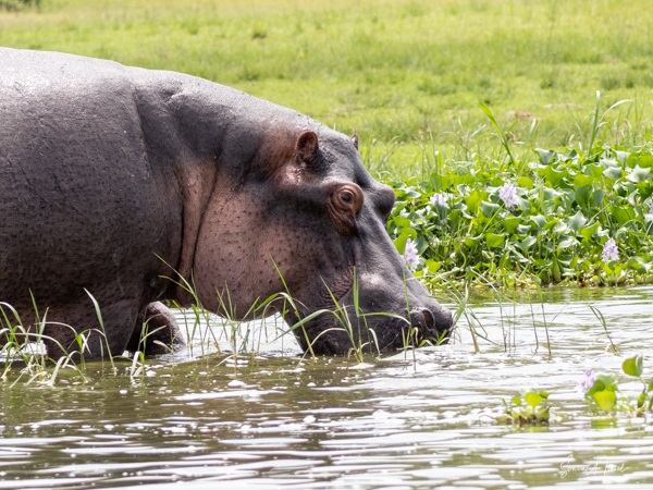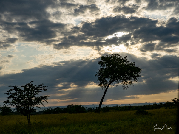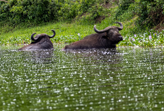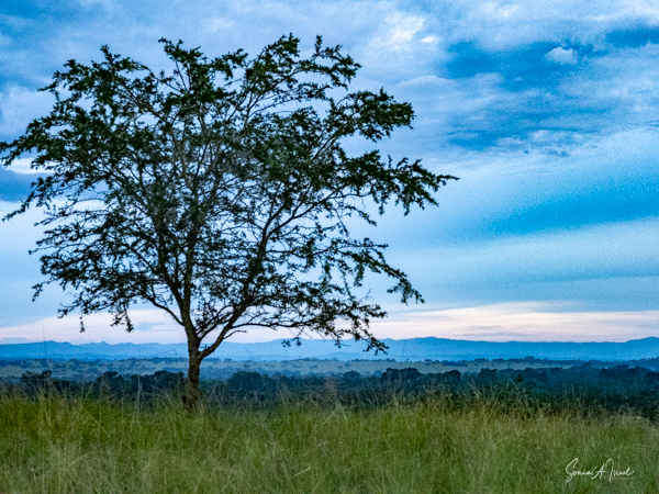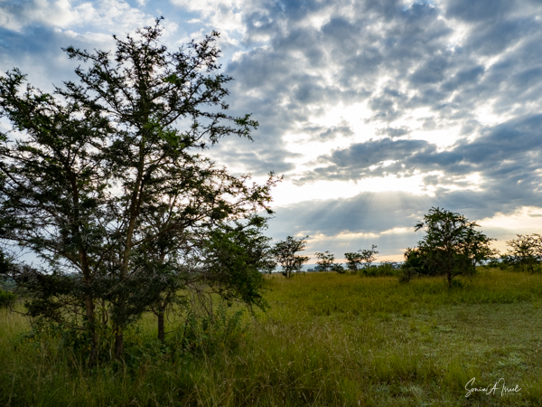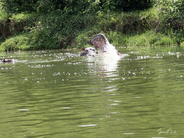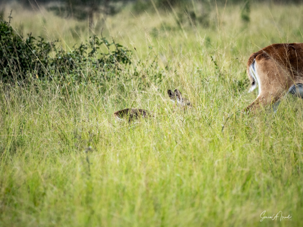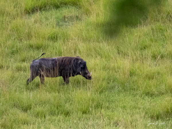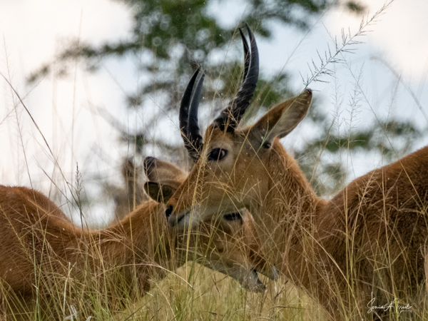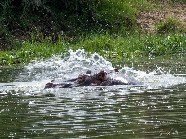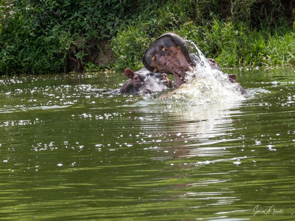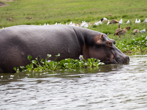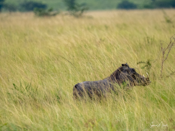 We drove around Ishasha in the afternoon, going from one fig tree to another, as that is the tree climbing lions’ favorite spot. At the first fig tree, we thought we saw a flash of yellow deep in the bushes under the tree. But no lions in the tree. We came back the next morning and drove for quite a few hours. Still no tree-climbing lions. Sulai thought that the males had wandered into the Congo and only two females with cubs where still in this area, and to protect their cubs, they were more likely to hide in bushes than to climb. We were ready with our cameras and binoculars, but we never got to see lions climbing trees.