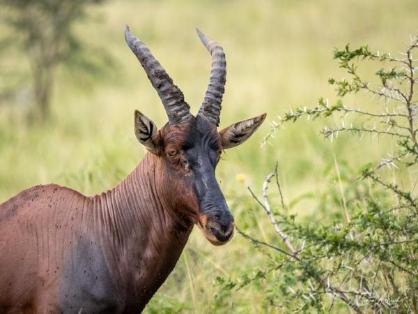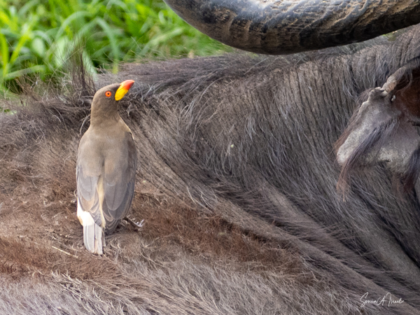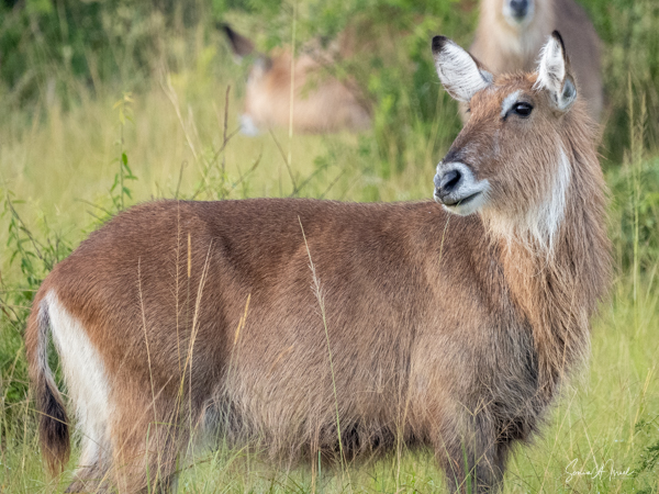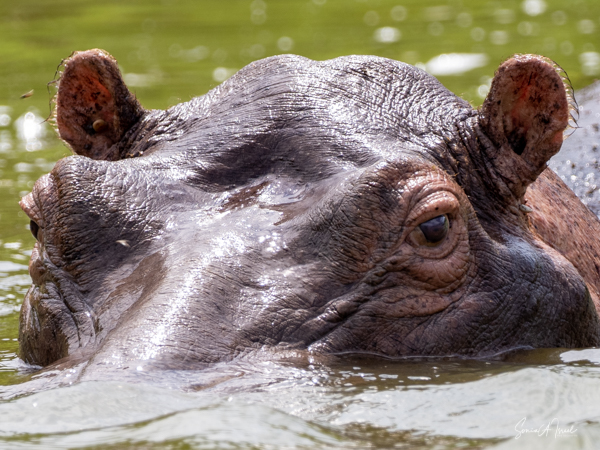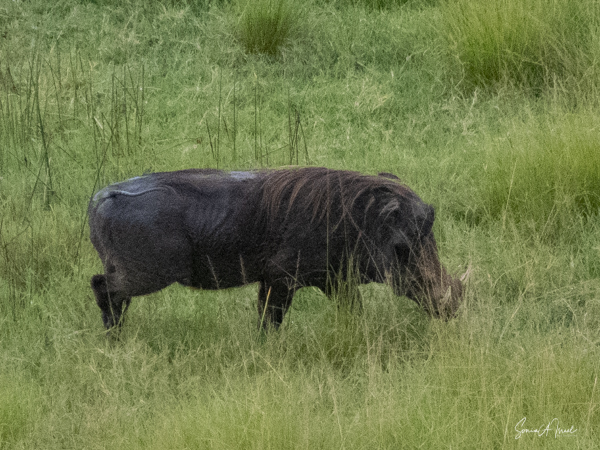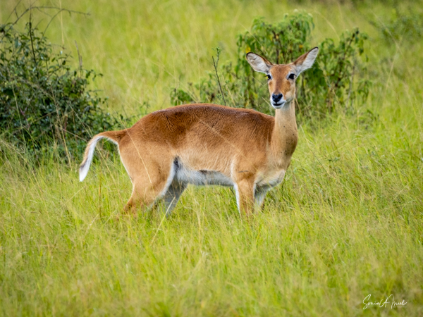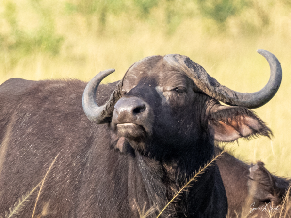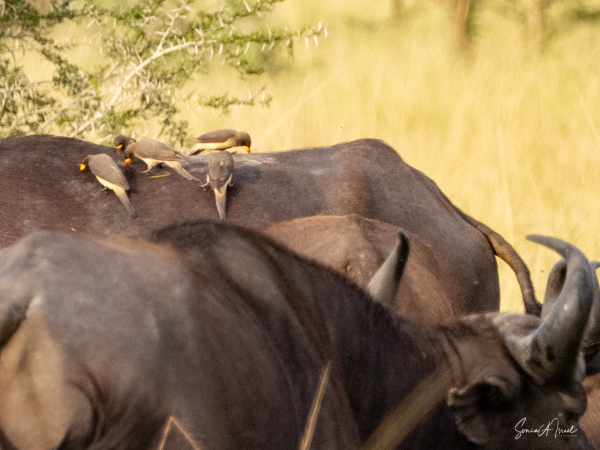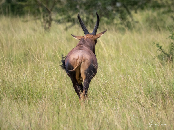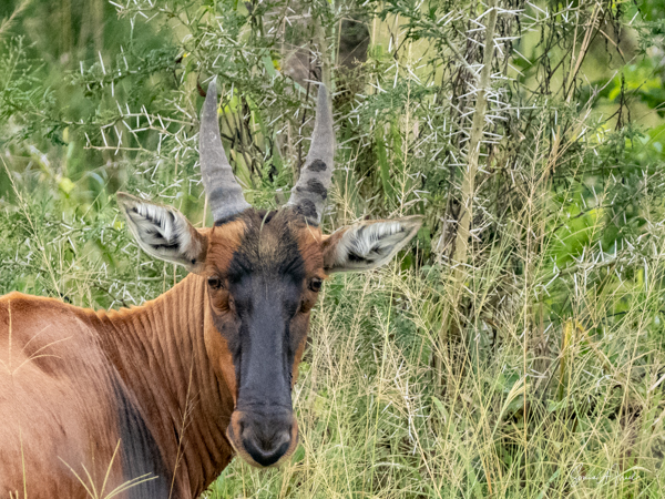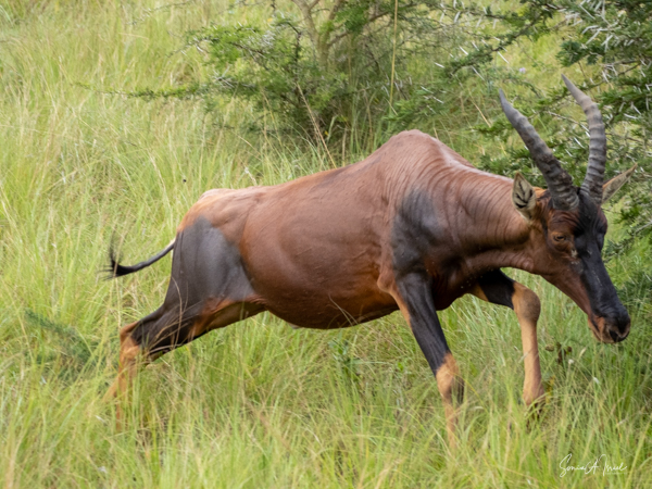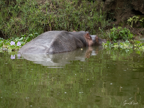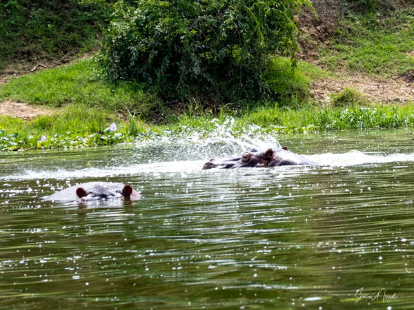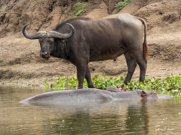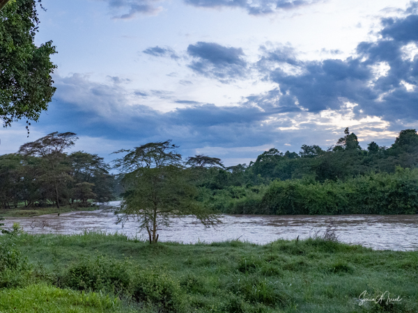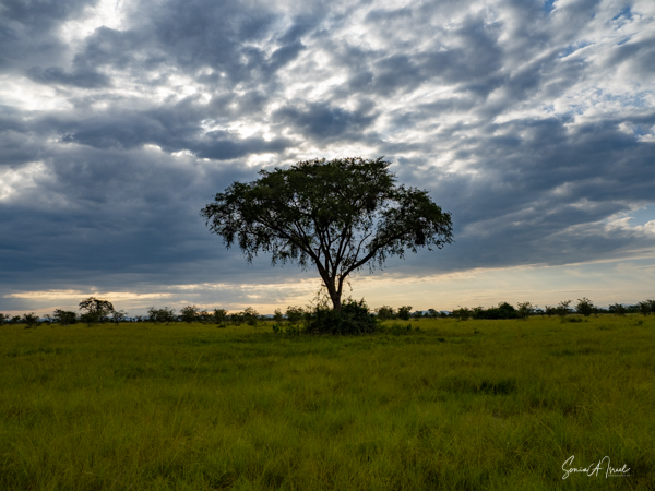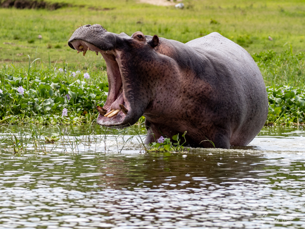 We drove around Ishasha in the afternoon, going from one fig tree to another, as that is the tree climbing lions’ favorite spot. At the first fig tree, we thought we saw a flash of yellow deep in the bushes under the tree. But no lions in the tree. We came back the next morning and drove for quite a few hours. Still no tree-climbing lions. Sulai thought that the males had wandered into the Congo and only two females with cubs where still in this area, and to protect their cubs, they were more likely to hide in bushes than to climb. We were ready with our cameras and binoculars, but we never got to see lions climbing trees.
