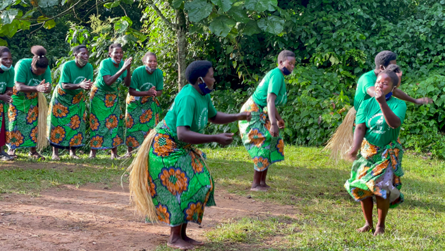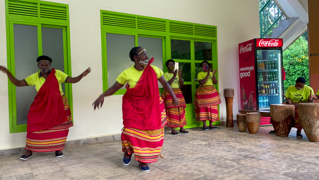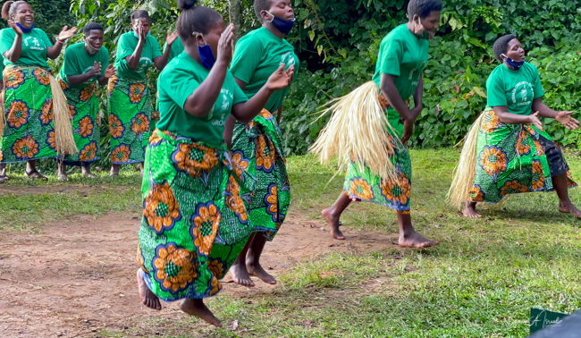 On our last night there, some local women came and performed songs and dances for us. It was similar to the dancing we had seen before our treks, but enjoyable nevertheless. One woman had a baby on her back as she performed. As you will read in chapter on Life in Uganda, carrying your baby on your back is very common here.
