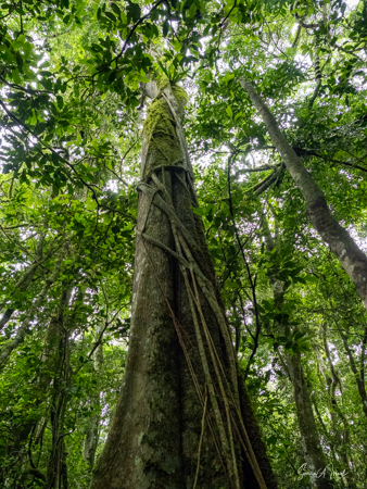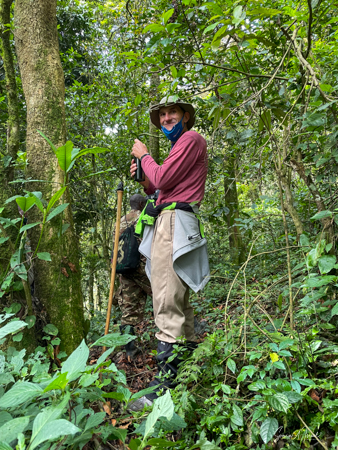 We watched again for our allotted 60 minutes and then headed back. This trek seemed easier than the morning one, perhaps because it was shorter, perhaps because it was less humid, perhaps because we stopped to rest on a log while Jessica searched the forest. But the end result was the same, we got to observe, and listen to, these amazing animals.