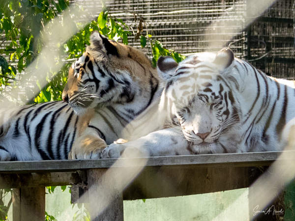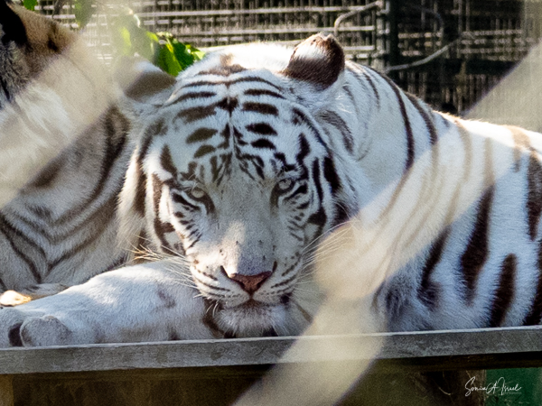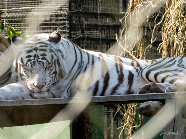 We started with observing the most gorgeous albino tiger. I had never even seen pictures of such an animal. He was breathtakingly beautiful. Of course, he was behind a fence, so the pictures had to be taken between the bars, but nevertheless, I think you can see that amazing face.