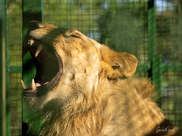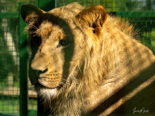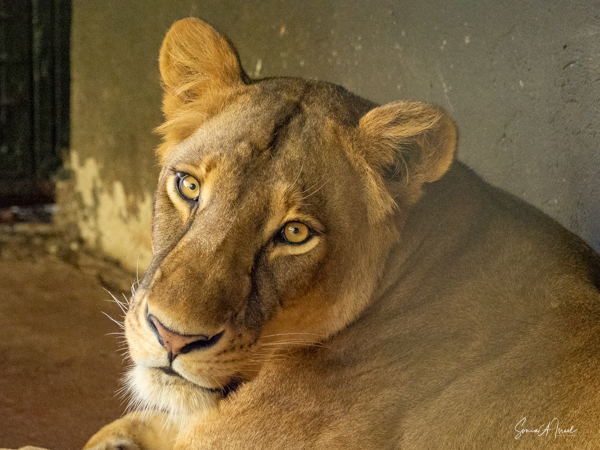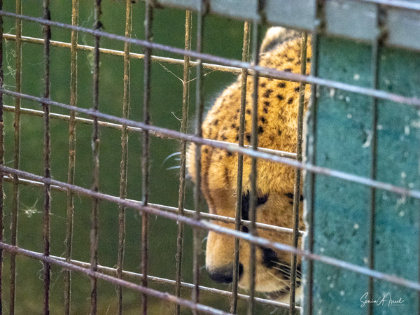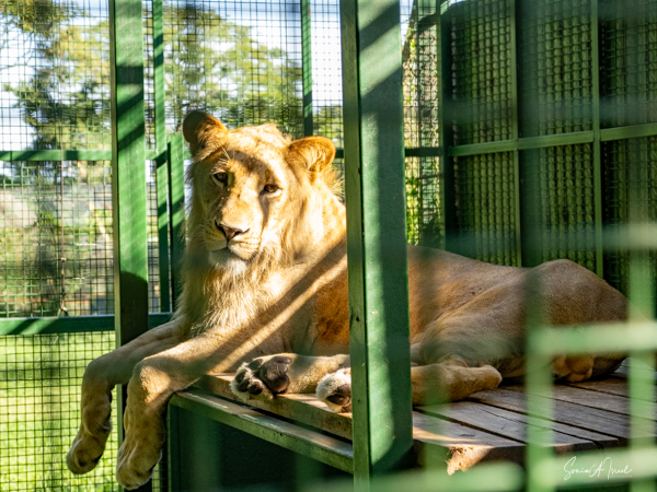Next where lions also in cages, two males and in a separate cage, their mother. They two, like all cats, were beautiful. And then there was the leopard who was sunning himself up on a ledge.