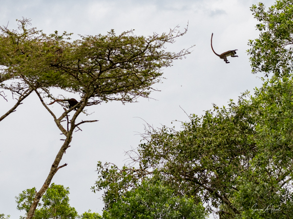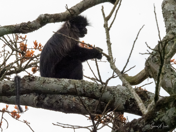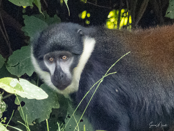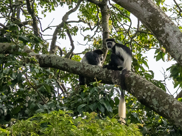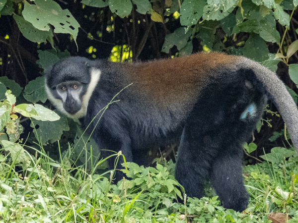 Throughout the trip, as we would drive from one place to another, we often saw other primates, including the red colobus monkey, a black face vervet monkey on the side of the road, black and white Colobus monkeys everywhere (including at the botanical garden as seen above), the red colobus monkey, the red-tailed monkey and the blue monkey, and the rare L’hoest monkey.