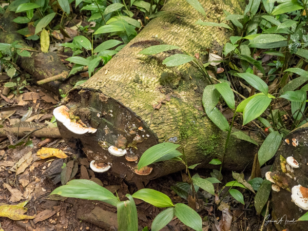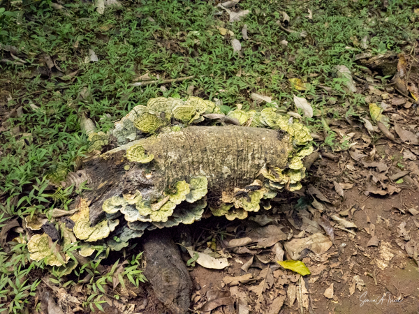 We learned something else about the cycle of life. There was a huge fungus, a bracket fungus, high up on a tall tree. Gordon taught us that when the fungus gets so heavy, it falls to the ground, leaving a big hole in the tree. Bugs and beetles enter the trunk through that hole, slowly eating away at the tree until it falls over and dies. The fungus is actually killing the tree so new growth can start.
