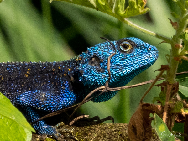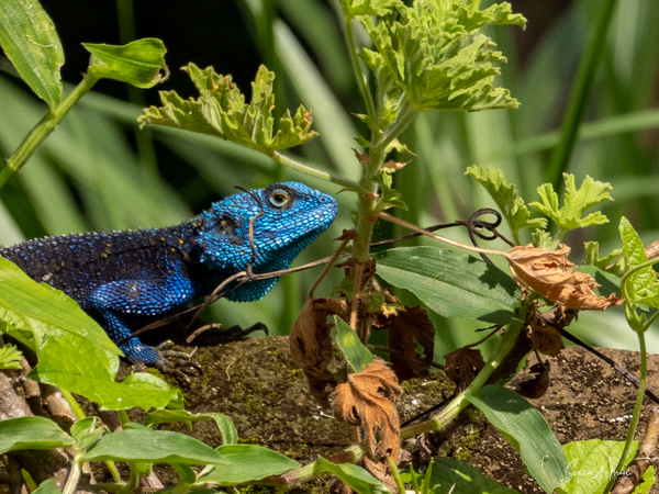 One morning, as I was walking around the Nkali property taking pictures, I saw a blue flash. It was so fast that I wasn’t even sure I really saw it. I mentioned it to Paul, who immediately said, “Yes, an agama lizard. They are all over here.” I then made it my mission to get a picture. I did see more, but they were so fast that I could never photograph their full body. But oh, what a color and oh what a head! They look like they are made of mosaics. As I keep saying, Mother Nature is the greatest artist of all.