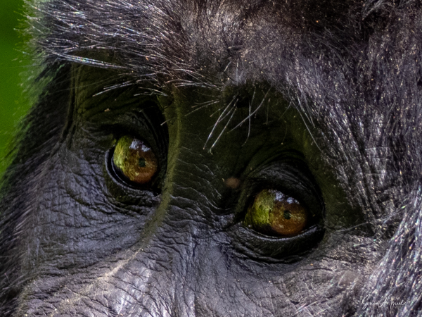 But this group of gorillas was probably the best to watch. We saw the whole family hanging out together, mothers and babies, teens and fathers. And of course, the silverback. They sometimes just sat there posing for our cameras. Other times they would run off, as if playing hide and seek, or looking at us and saying, “catch me if you can!” But it was their eyes that once again took my breath away. Their eyes were truly “windows into their souls.” They looked at us with those amber eyes and it was as if they were also looking into our souls.