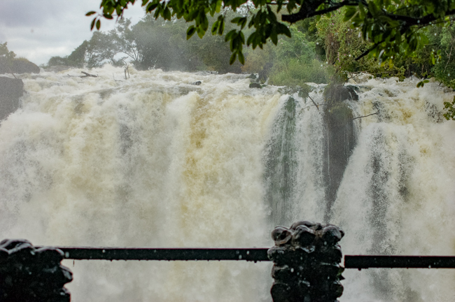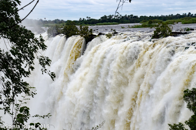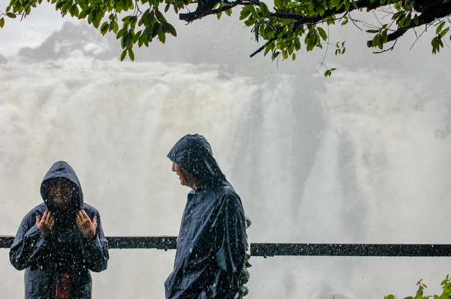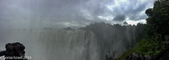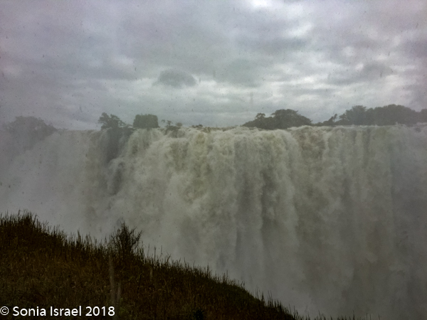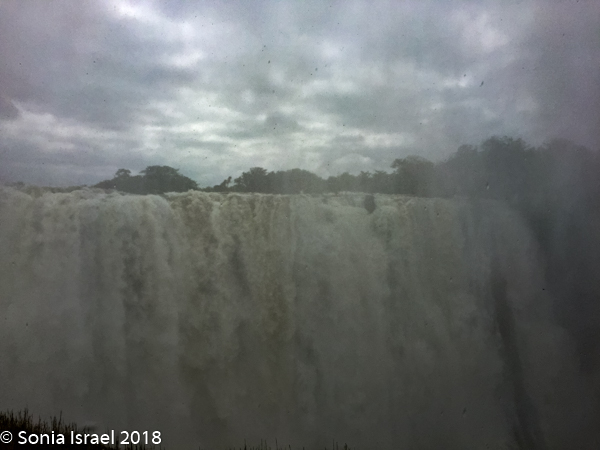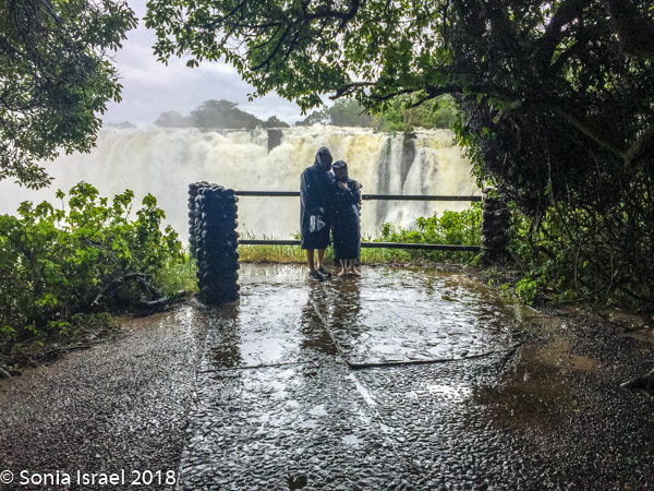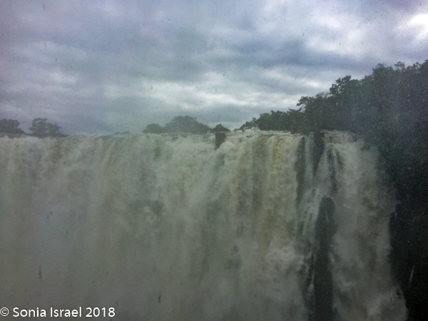 There were places where we couldn’t even see the falls as the mist was so thick. There are beautiful pictures of the full falls, particularly in the dry season. We never got to see that. We would see bits and pieces, but mostly we had to keep our heads down to keep from drowning.
