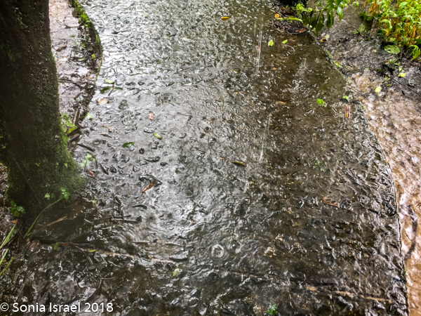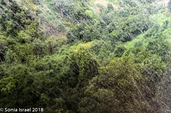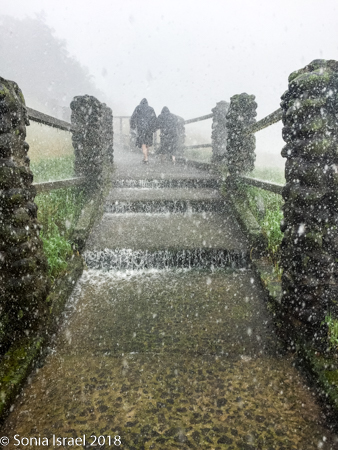 At times the rain felt like it was inverted and the wind blew the mist up instead of down. The stairs along the walkway had their own little waterfalls as the water ran downstream.