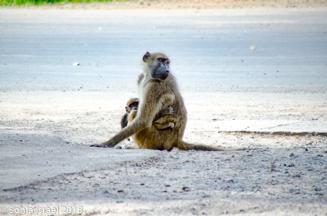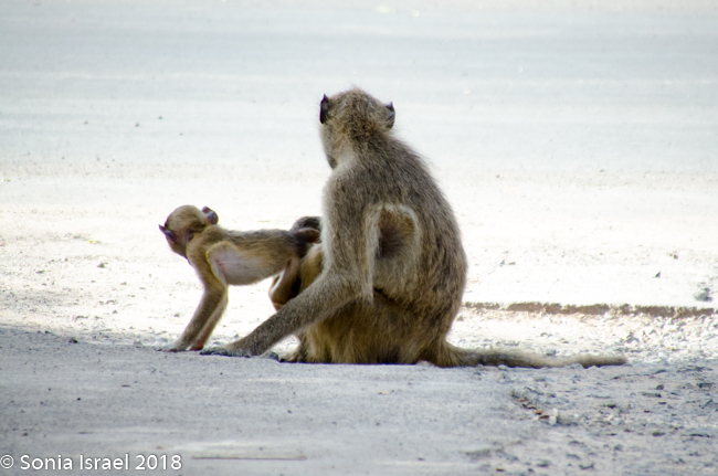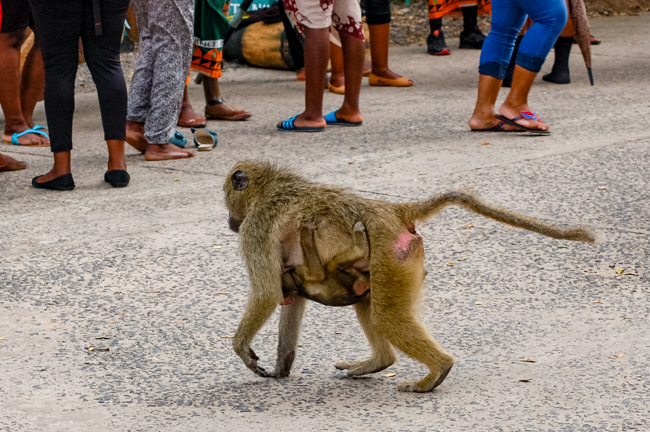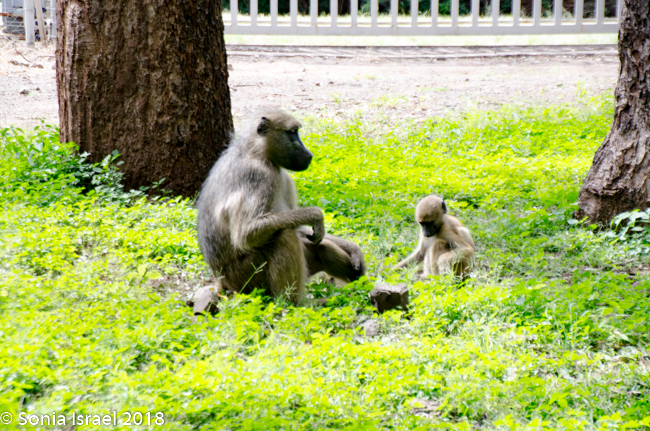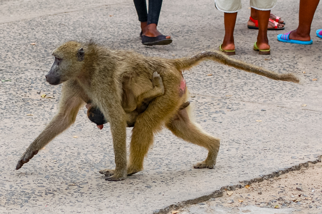 We pulled into the parking lot which was being guarded by a rifle-carrying policeman. There were baboons running around everywhere (and later, when we got back to the van, we found that they had left us some “presents” on the seats).