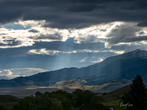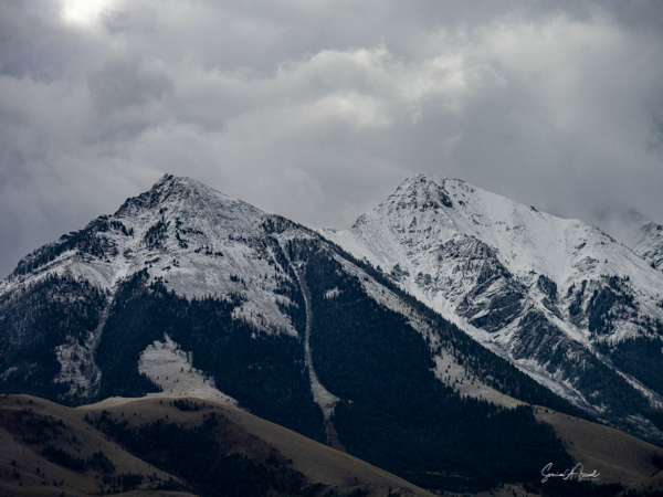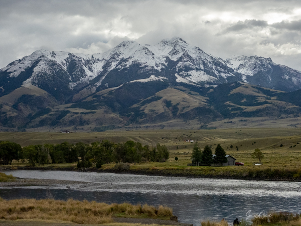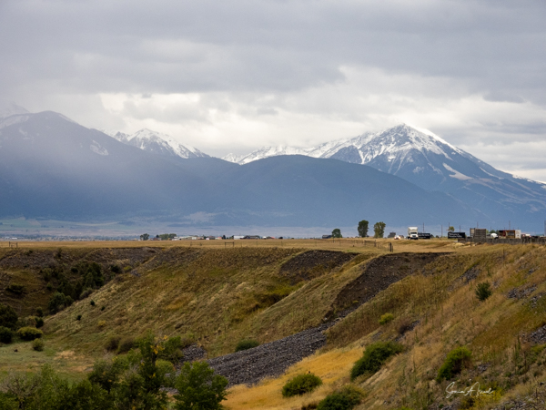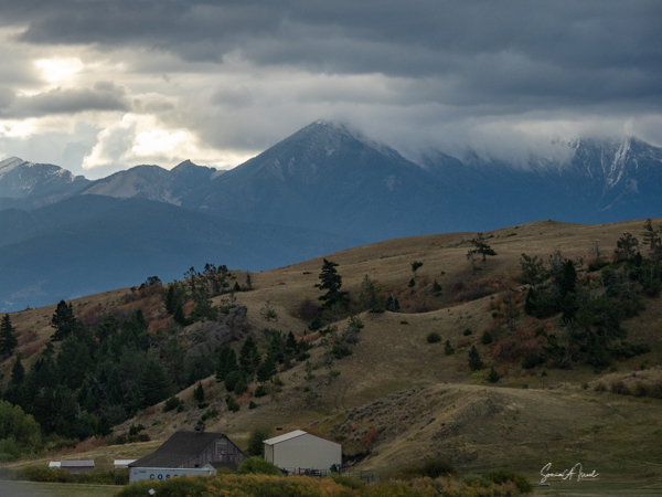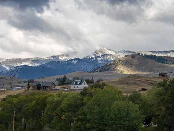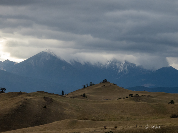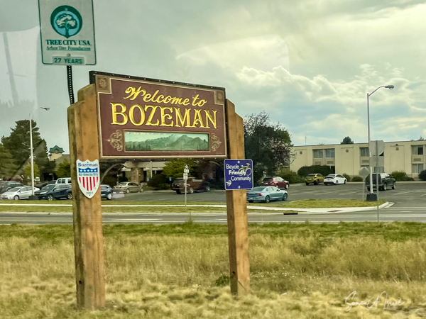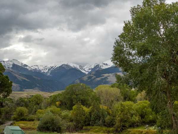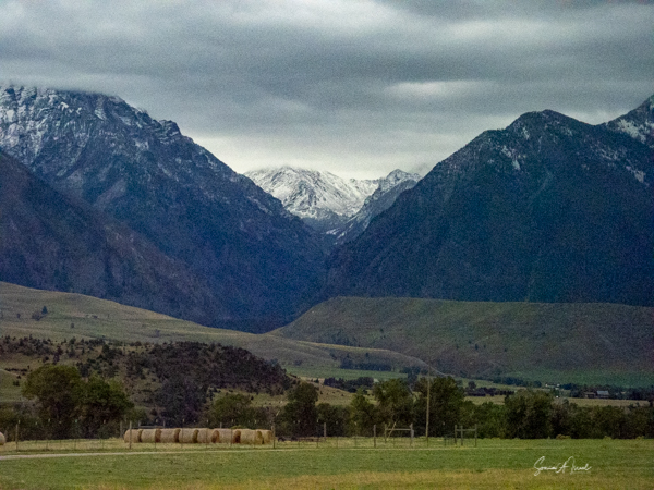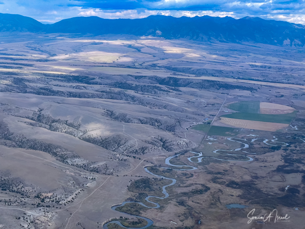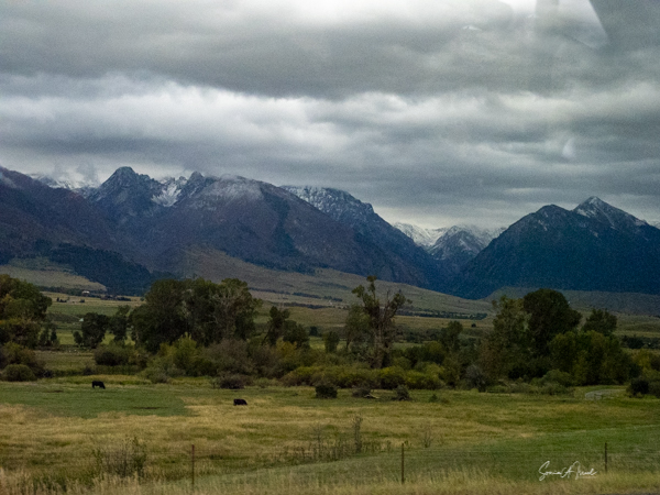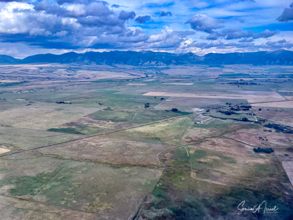 I am usually an aisle kind of gal, but I chose to sit by the window on the flight into Bozeman. The ground looked marbled, primarily brown and tan with a plot of green now and then with a meandering river. The mountains creeped up on us with white clouds covering the peaks. The sky was dark and the ground covered by shadows except for one patch of sunlight. And then landscape broke into farmland dotted with little white houses here and there, still surrounded by the mountains. We flew lower and lower as if we would land on a field. And suddenly there was the runway.