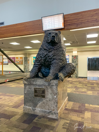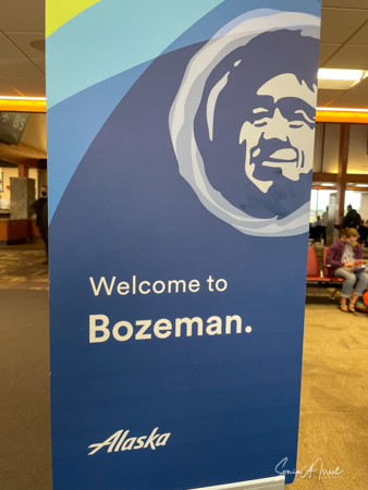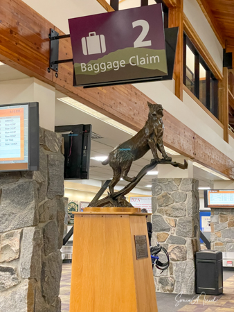The Bozeman airport is charming. That is truly the best word to describe it. As you can imagine, it is relatively small and almost all wood. As we walked into the baggage area there was a large bison statute and in the baggage claim area there were animal statues of all sorts â all the wildlife we were hoping to see in person.