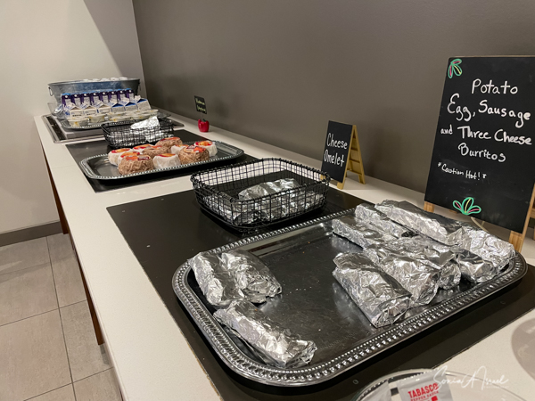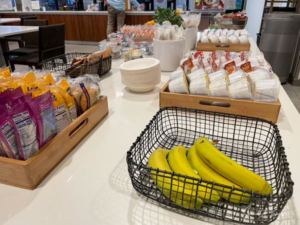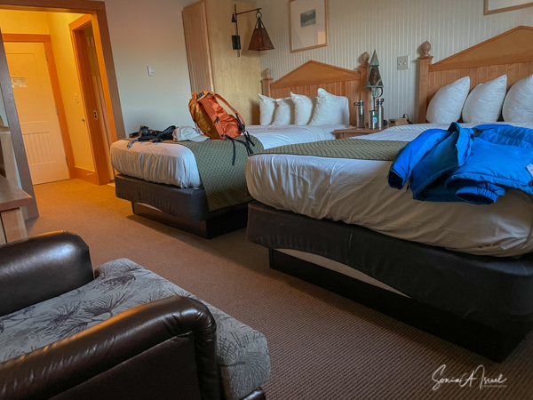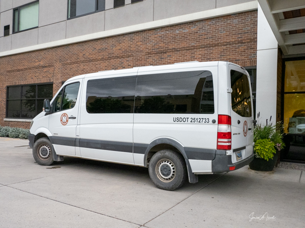 The next morning, after putting our luggage outside our door to be picked up, we headed to breakfast. Breakfast here was probably once a lovely buffet. But today, with all the new pandemic fears and restrictions, it was prepacked eggs, yogurt and anything else that could be wrapped up and eaten with plastic. But the beds had been comfortable, the rain shower a great waker-upper, and we were so ready to hit the road in Moose, our transportation for the next 6 days.