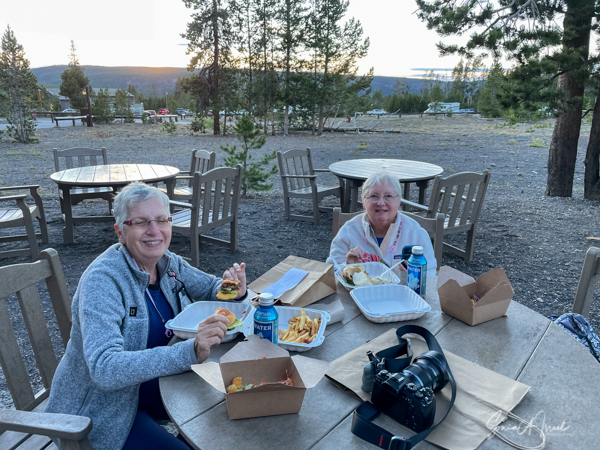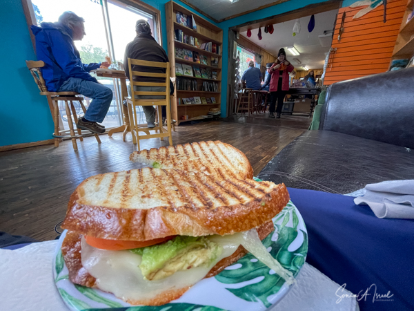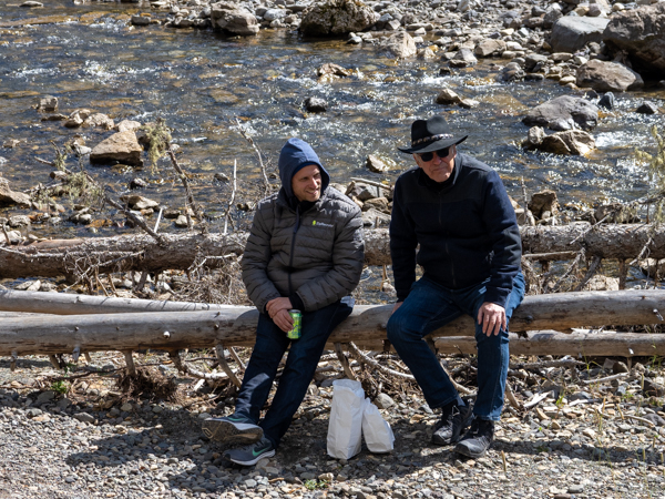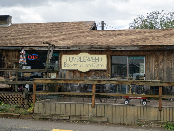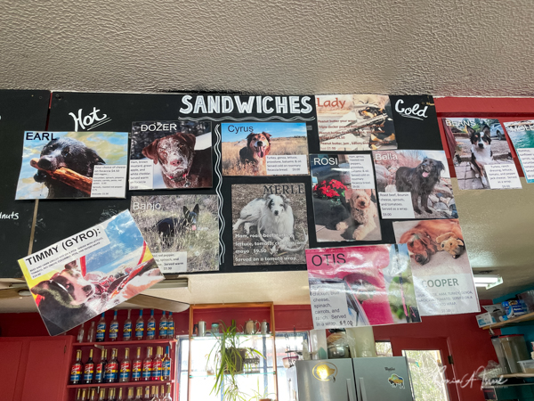 Twice while in Yellowstone, we stopped in Gardiner for sandwiches at the Tumbleweed Bookstore and Cafe. The Tumbleweed is a small, quaint wood-clad bookstore and sandwich shop where all the sandwiches are named after dogs. And the best part is they had Kurtâs book on Yellowstone for sale. The first day we ate inside amongst the books. The second time we took our sandwiches and picnicked. Both times they were delicious.