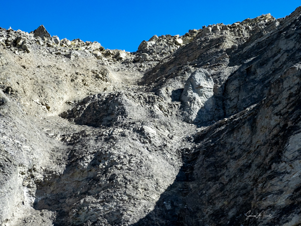 In the near distance I noticed some dead trees. Now, while some might think of dead trees as a sad reminder of loss, of fire, of age, I see the dead trees as necessary for new growth. And I must admit I loved the starkness of the black bark against the white limestone and the blue sky. The skeletons, as they are called, are left over from the 1950s when this terrace was created, being active until the 1980s. Now it is just stark white with a reminder of what once was here. And given how everything here is fluid, I imagine that when I return (and I will return), it will look different again.