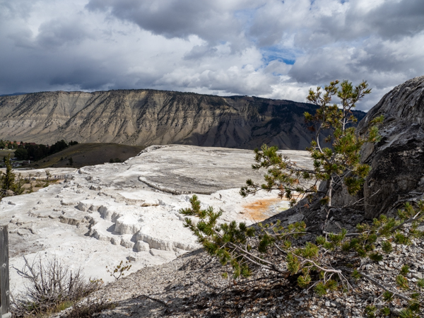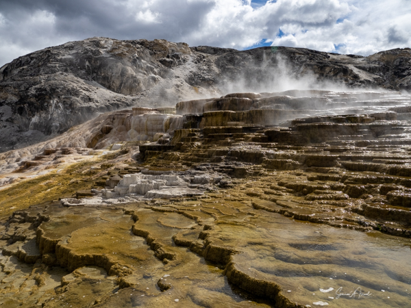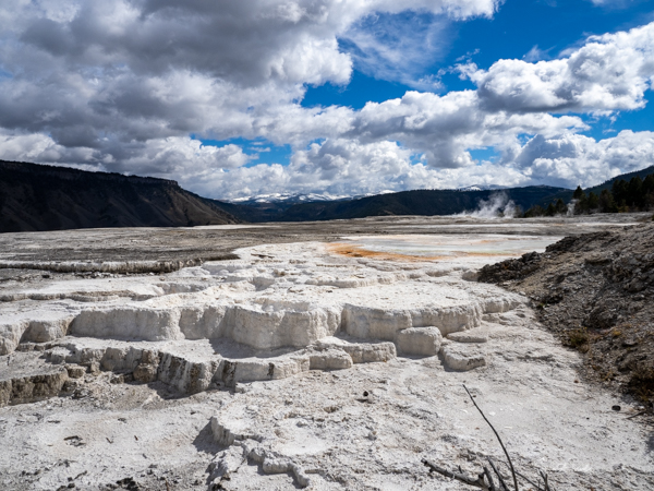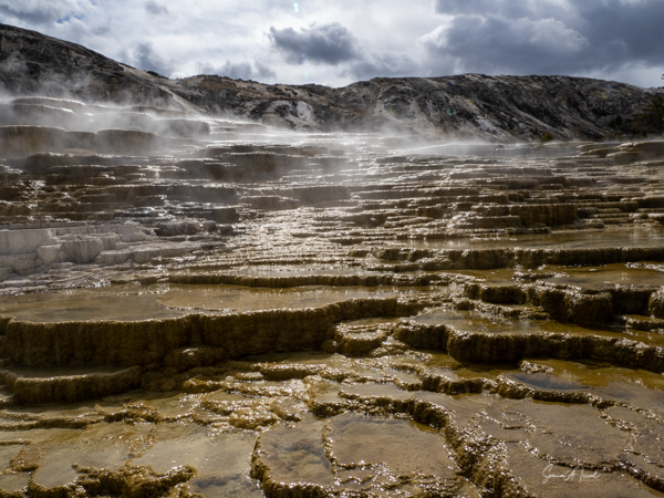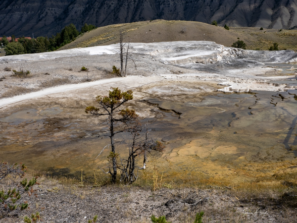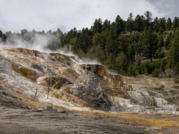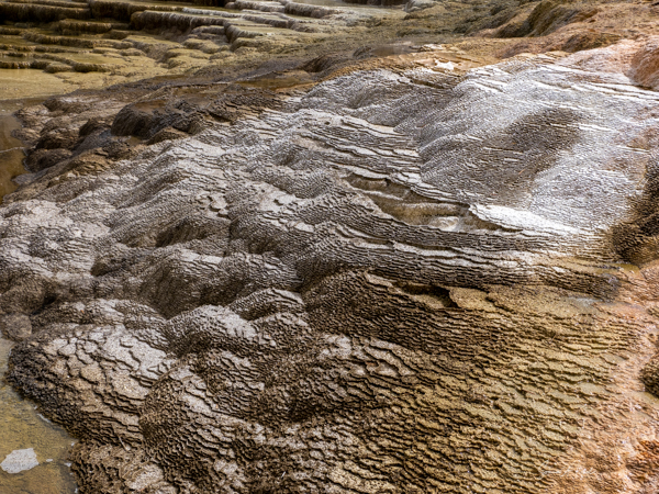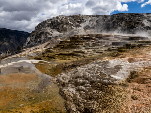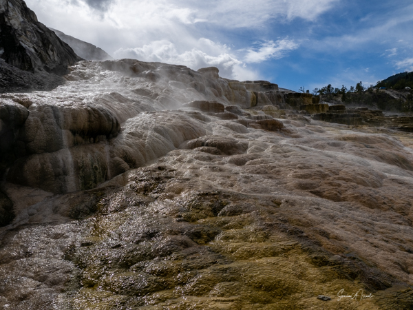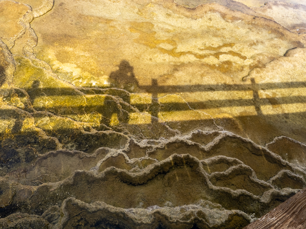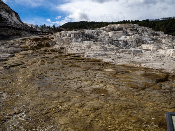 Some describe this area as a cave turned inside-out. Unlike other hot springs, whether in Yellowstone or elsewhere, to me these looked like a tiered travertine wedding cake with the water cascading down.