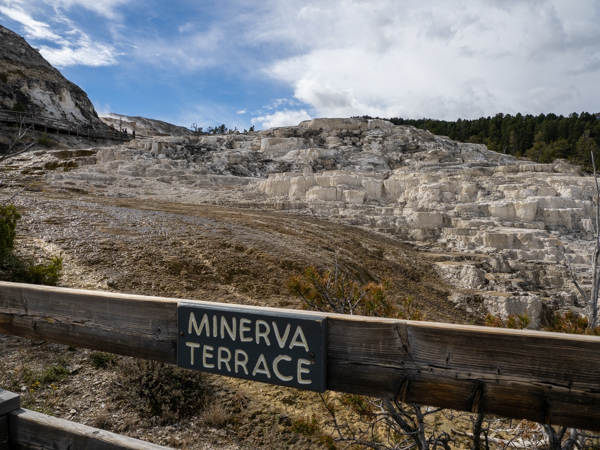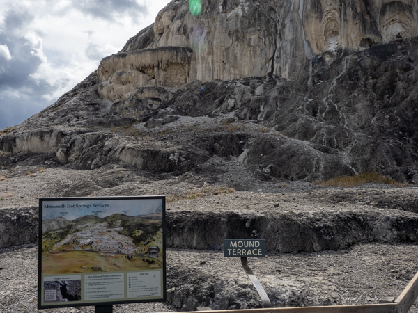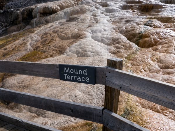 And right next to Minerva Terrace was Mound Terrace, also quite breathtaking. Although missing the yellows and oranges and browns, the mounds had shapes that still enthralled me. The travertine here looked more weathered, in shades of gray and still there were patterns that only Nature could make.