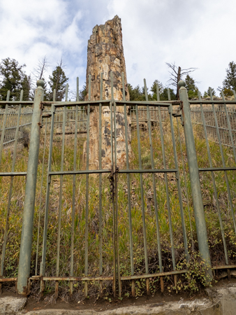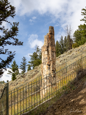 Liberty Cap looks like a huge cone coming up from the ground. It stand 37 feet high but really was a hot spring. It was named Liberty Cap after the peaked caps worn during the French Revolution. The cone shape arose from the continuous flow over hundreds of years with an internal pressure that pushed the water to great heights, thus allowing mineral deposits to build up.