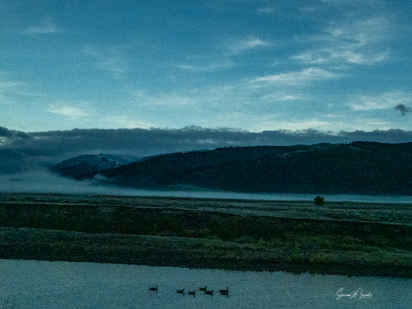 We settled into our room, not really unpacking as we were only here for one night. And then it was off to the welcome dinner where the menu included elk and where we would meet our fellow travel companions, David and Joan and their daughter Erin, all physicians, and Chet and his son, Travis, and us. We were a small group of only seven people, a perfect size. This was a photography group and having a small group meant there would be plenty of room for all our camera gear.