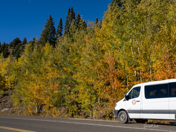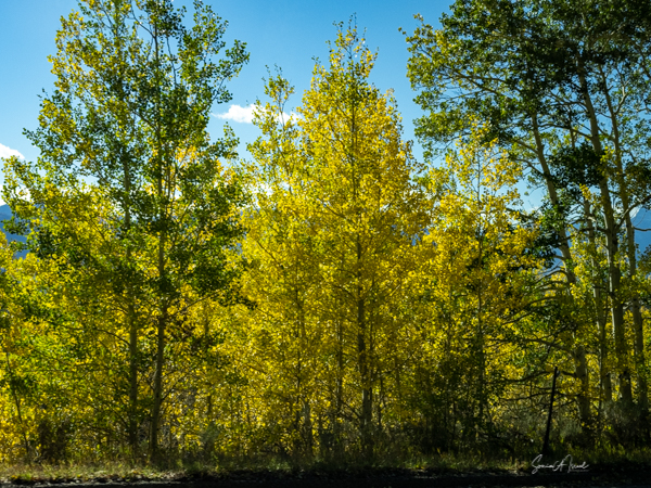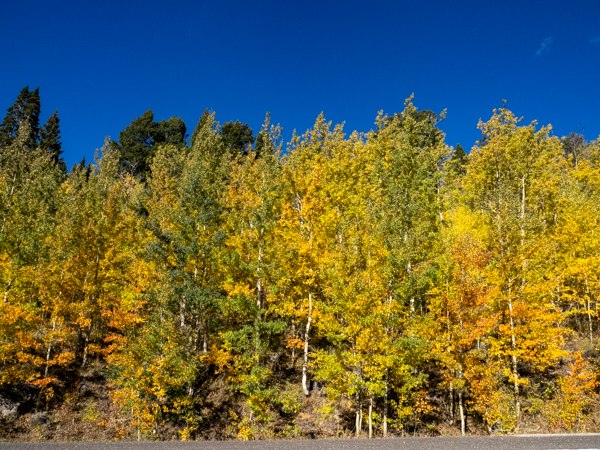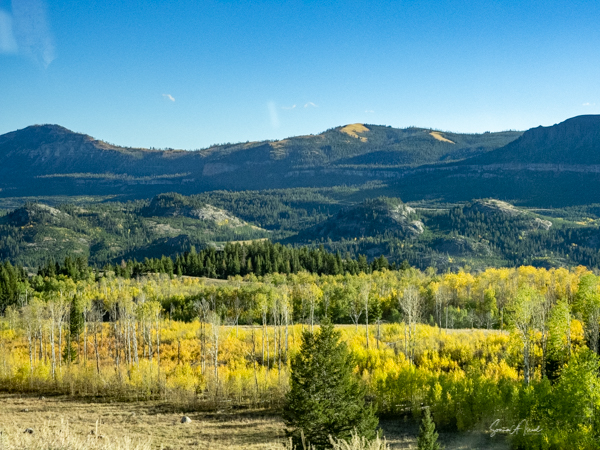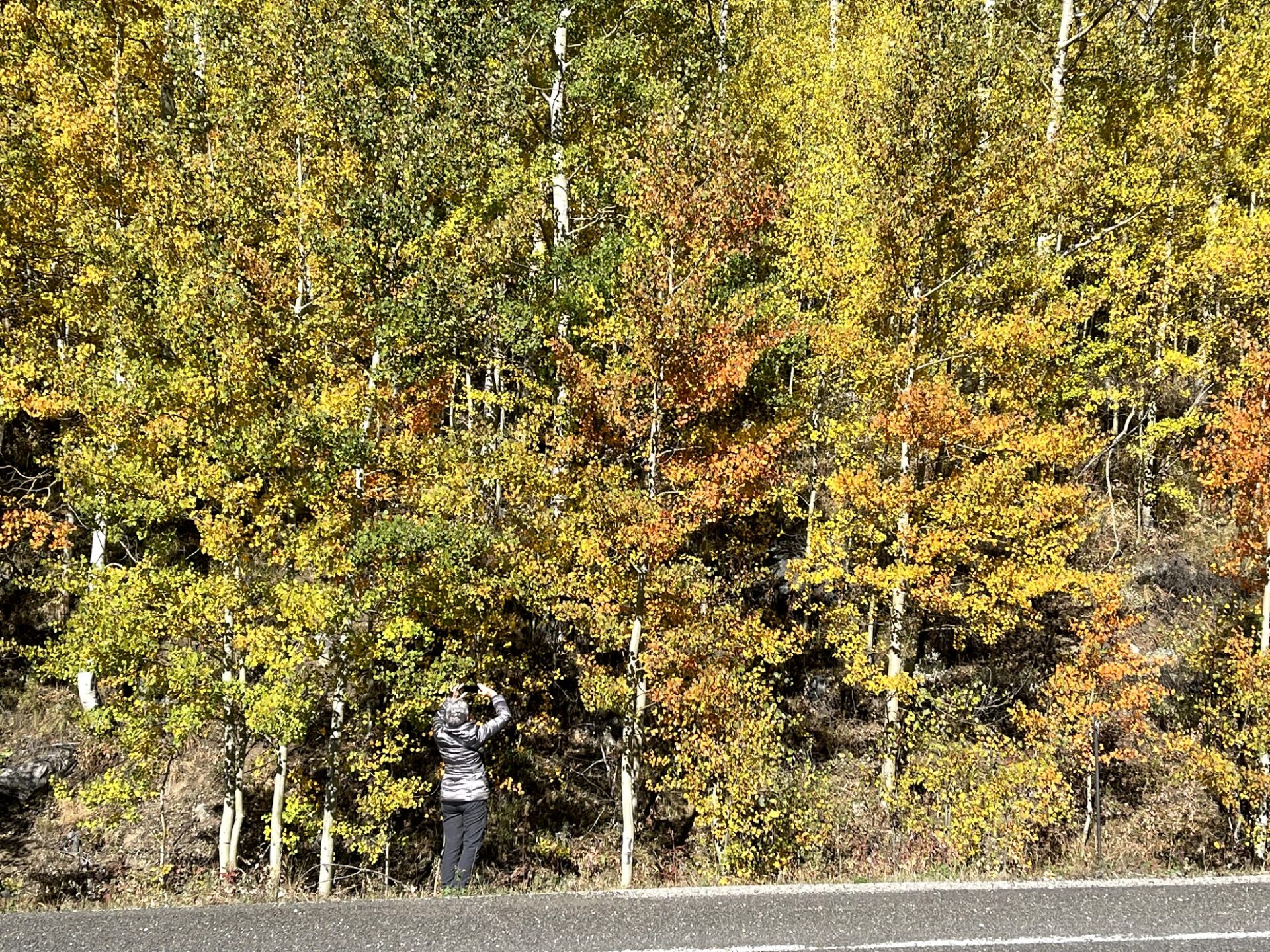 We were lucky to be here in the fall when the trees, particularly the Aspen trees, turned from green to sparkling yellow and orange. The landscape was draped with golden color which sparkled in the rays of the sun. It looked like a plush carpet of yellow Aspen. The grasses were tall and yellow. Shrubs were covered in red leaves. Wherever we looked, there was radiant color. I am sure Yellowstone is gorgeous in every season. I hope to return one day in the winter when everything is white. But for now, for this trip, the fall colors took my breath away.